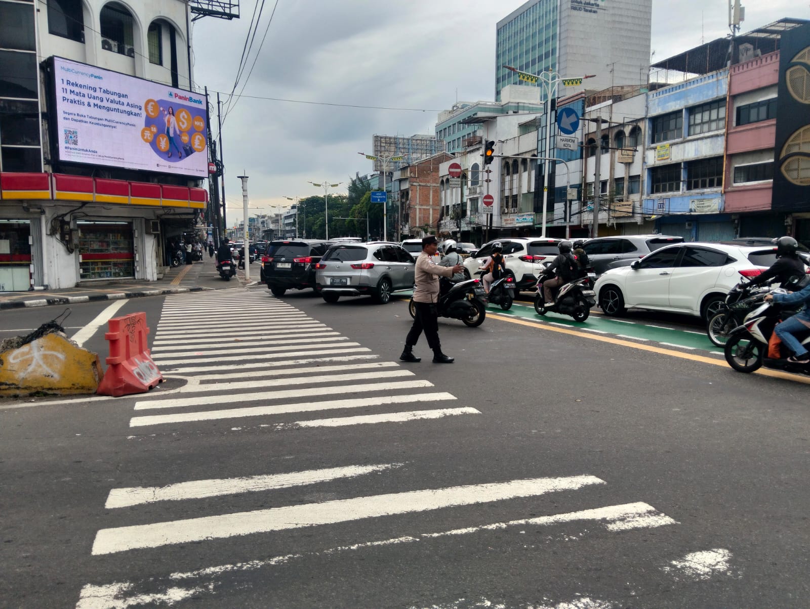 Personel yang bertugas, Aiptu Suyanto, hadir sejak pagi untuk memastikan arus lalu lintas berjalan lancar. Dengan pengaturan manual di titik-titik rawan, petugas membantu pengendara melintasi simpang dengan lebih aman dan tertib. Sesekali, petugas juga memberikan imbauan humanis kepada pengendara agar tetap mematuhi aturan dan berhati-hati demi keselamatan bersama.
