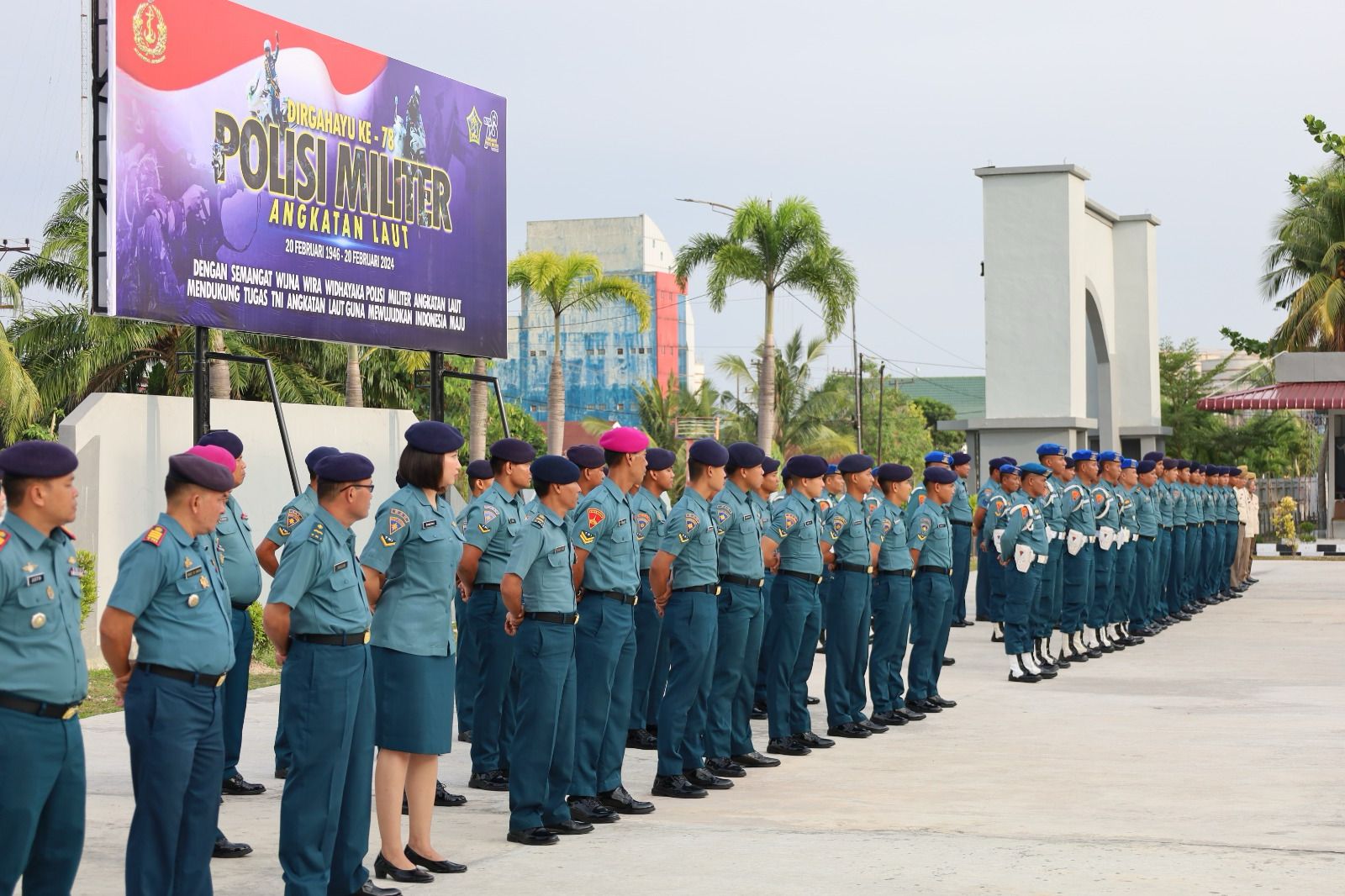 Palapanews.my.id TNI AL, Dumai,- Dalam rangka memperingati HUT Ke-78 Pomal Tahun 2024, Palaksa Letkol Laut (PM) Priatno, S.H, M.H., pimpin Apel Khusus dan pembacaan amanat Kepala Staf Angkatan Laut (Kasal) yang dilaksanakan di Lapangan Apel Mako Lanal Dumai, Jalan Yos Soedarso No. 1, Kelurahan Buluh Kasap, Kecamatan Dumai Timur, Kota Dumai, Selasa (20/02/2024).