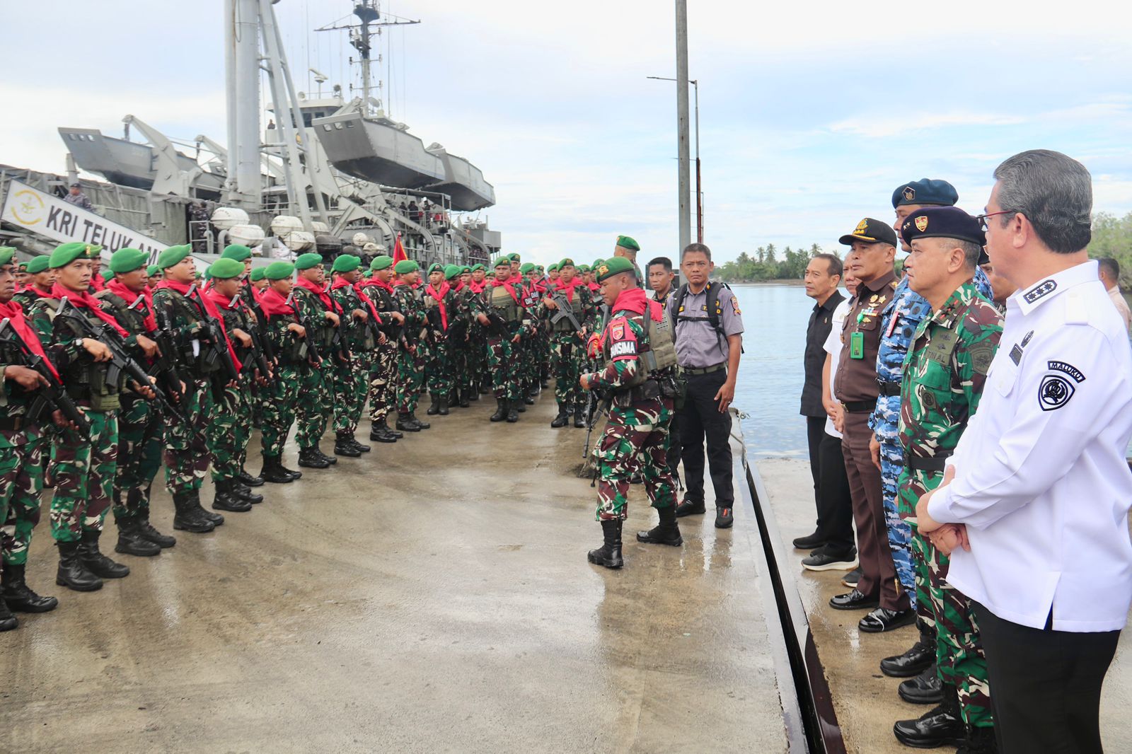 Pada rangkaian prosesi pemberangkatan, hadir Forkopimda Maluku, Dankodaeral IX menegaskan bahwa seluruh fasilitas pangkalan dan unsur KRI telah disiapkan secara optimal untuk mendukung pergeseran pasukan.