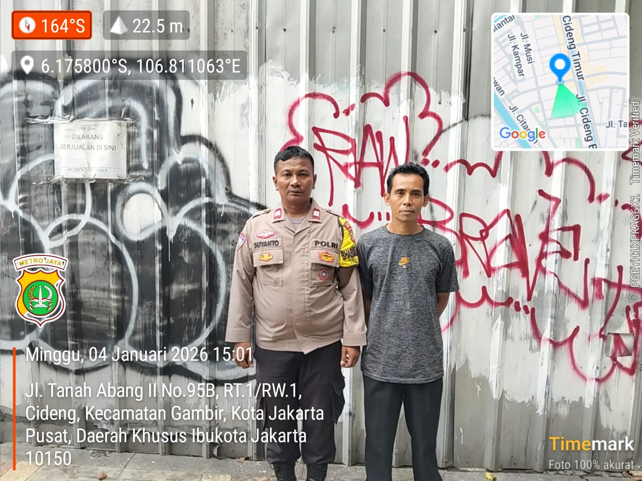 Palapanews.asia Jakarta Pusat — Upaya pencegahan gangguan keamanan dan ketertiban masyarakat (kamtibmas) terus dilakukan jajaran Polsek Metro Gambir melalui peran Bhabinkamtibmas. Pada Minggu (4/1/2026), Bhabinkamtibmas Kelurahan Cideng, Aiptu Suyanto, melaksanakan patroli sekaligus pengecekan lahan kosong yang terdapat bangunan tua di Jalan Tanah Abang II Nomor 95 RT 01/01, Kelurahan Cideng, Kecamatan Gambir, Jakarta Pusat.
