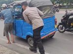 Mendorong Bajaj Mogok, Bripda Rafi Bantu Warga agar Lalu Lintas Tak Macet di Gunung Sahari