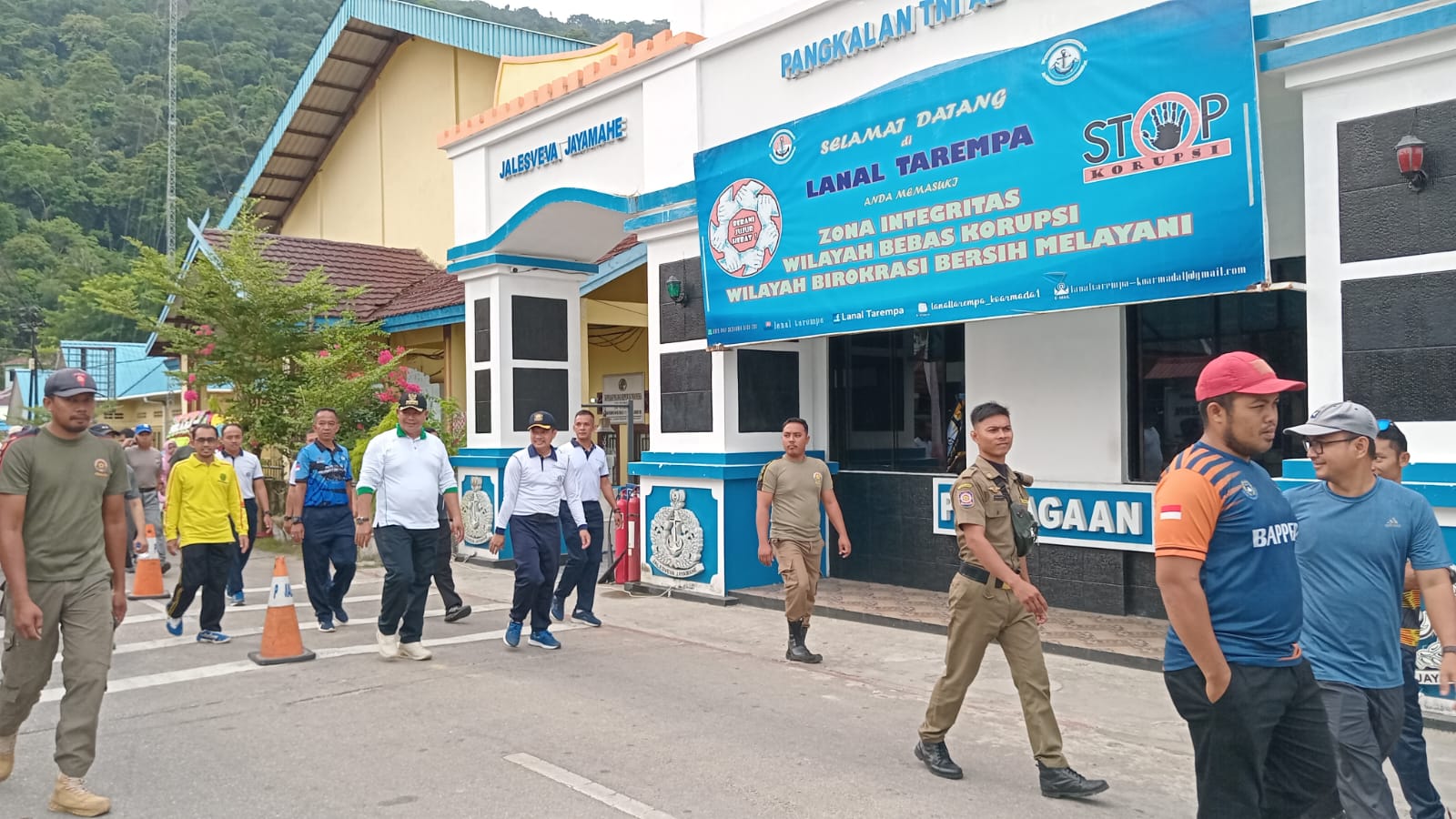 Dalam Rangka Hari Jadi Ke-16 Tahun Kabupaten Kepulauan Anambas, Danlanal Tarempa Ikuti Senam Bersama dan Jalan Santai