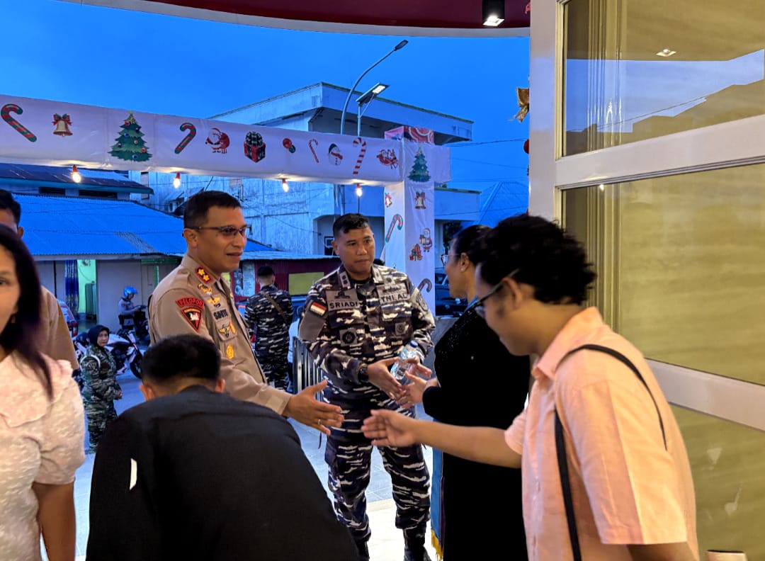 Palapanews.asia TNI AL, Aru,- Guna memastikan langsung kesiapan personel gabungan serta sarana prasarana penunjang Operasi Lilin Salawaku 2025 yang digelar oleh Kepolisian Resort (Polres) Kepulauan Aru, Komandan Pangkalan TNI AL Aru Letkol Laut (P) Sriadi, S.E., M.Tr.Opsla., turun lapangan bergabung dengan Forkompda melakukan peninjauan langsung ke sejumlah Pos Pengamanan (Pos Pam) Natal dan Tahun Baru (Nataru) di Kota Dobo Ibukota Kabupaten Kepulauan Aru, Rabu (24/12/2025).