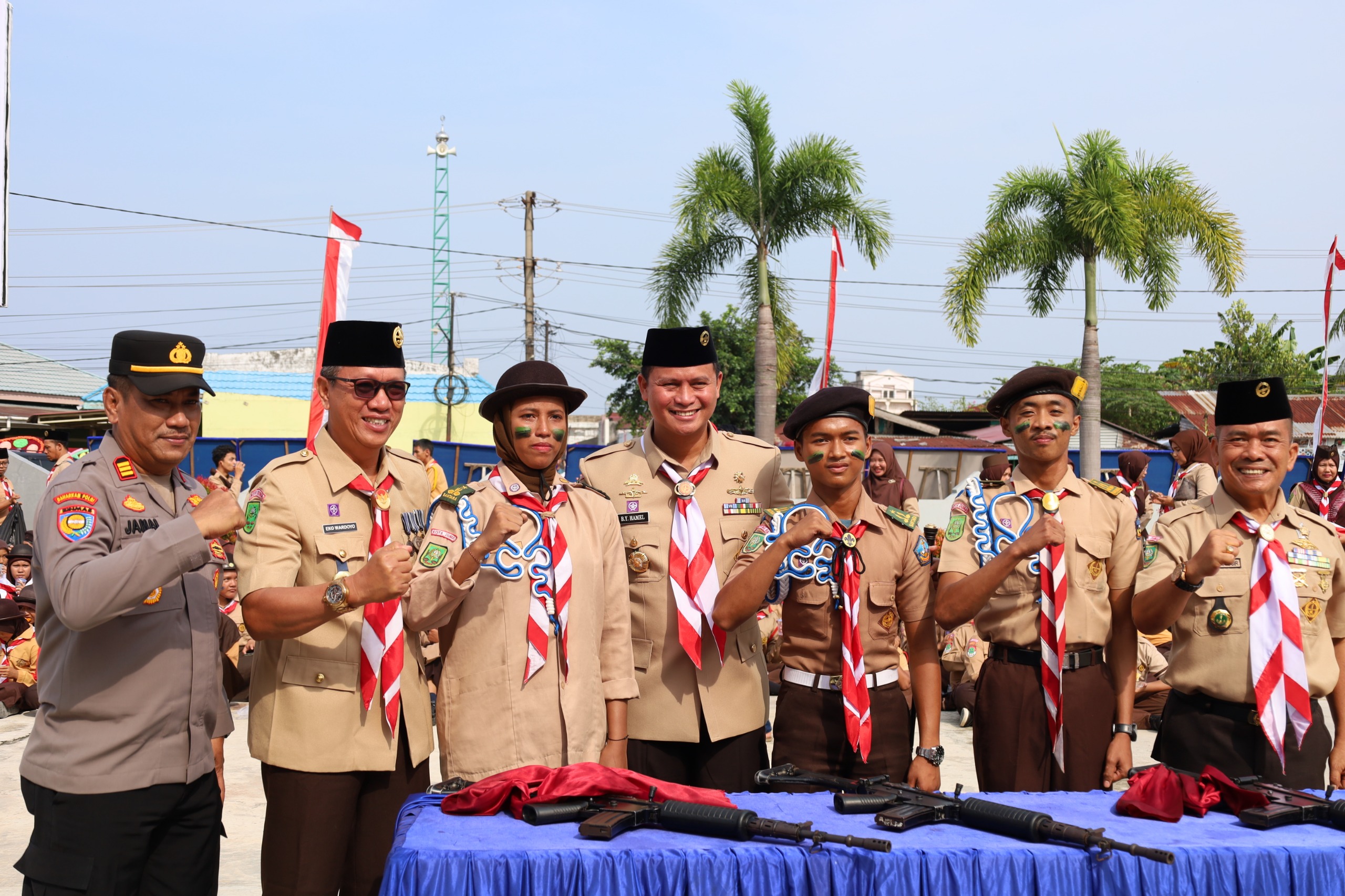 Palapanews – TNI AL, Dumai,- Komandan Pangkalan TNI AL Dumai Kolonel Laut (P) Boy Yopi Hamel, selaku Ketua Kwartir Nasional Gerakan Pramuka Kota Dumai memimpin Apel Besar Hari Pramuka Ke-63 Tahun 2024 Tingkat Kwartir Kota Dumai yang dilaksanakan di Lapangan Apel Mako Lanal, Jalan Yos sudarso No. 1 Dumai, Rabu (14/8/2024).
