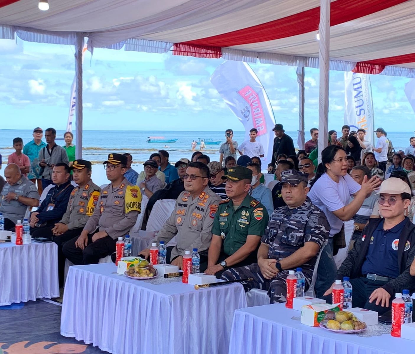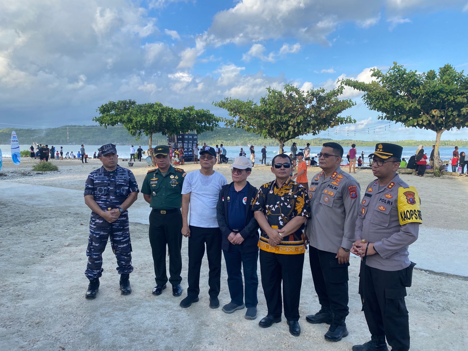Palapanews – TNI AL, Nias,- Komandan Lanal Nias Kolonel Laut (P) Wishnu Ardiansyah, S.E., M.Tr.Hanla., M.M., CHRMP., didampingi Ketua Korcab II DJA I Ny. Indria Wishnu Ardiansyah mengikuti dan mendukung sepenuhnya kegiatan Pembukaan Kejuaraan Event Internasional Nias Pro 2024 WSL 5000 bersama seluruh Forkopimda Nias yang diselenggarakan oleh Pemerintah Kabupaten Nias Selatan, mulai tanggal 08 sampai 15 Juni 2024, di Pantai Sorake, Nias Selatan, Sumatera Utara, Sabtu (8/6/2024).
