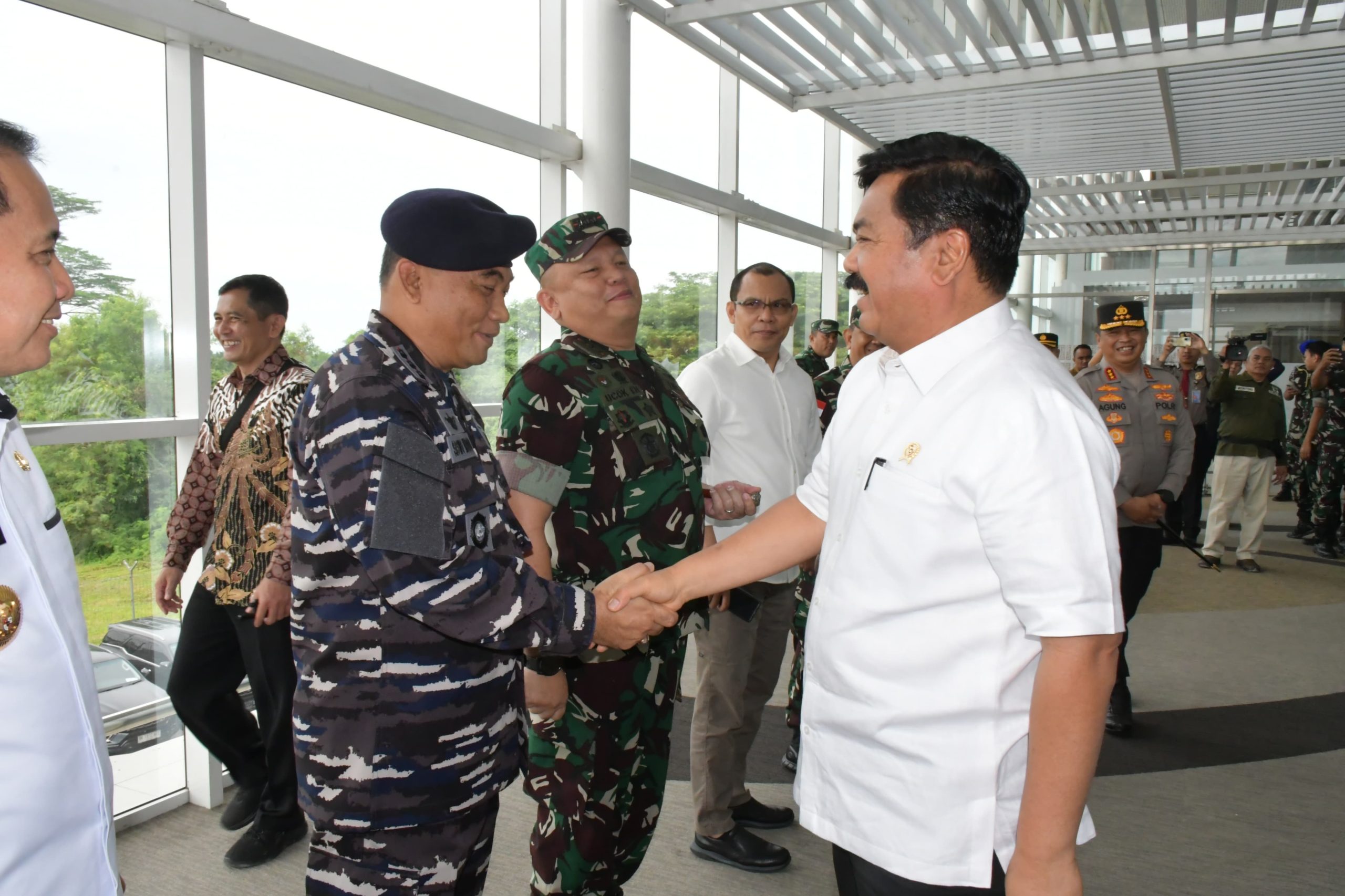 Palapanews – TNI AL, Belawan,- Komandan Pangkalan Utama TNI AL I (Danlantamal I) Brigjen TNI (Mar) Jasiman Purba, S.E., CHRMP., diwakili Wadan Lantamal I Kolonel Laut (P) Siswo Widodo, S.T., mengantar keberangkatan Menteri Koordinator Bidang Politik, Hukum, dan Keamanan (Menkopolhukam) Marsekal TNI (Purn) Dr. (H.C.) Hadi Tjahjanto, S.I.P,. beserta rombongan, bertempat di Bandara Internasionsl Kualanamu, Deli Serdang, Sumatera Utara, Rabu (10/7/2024).
