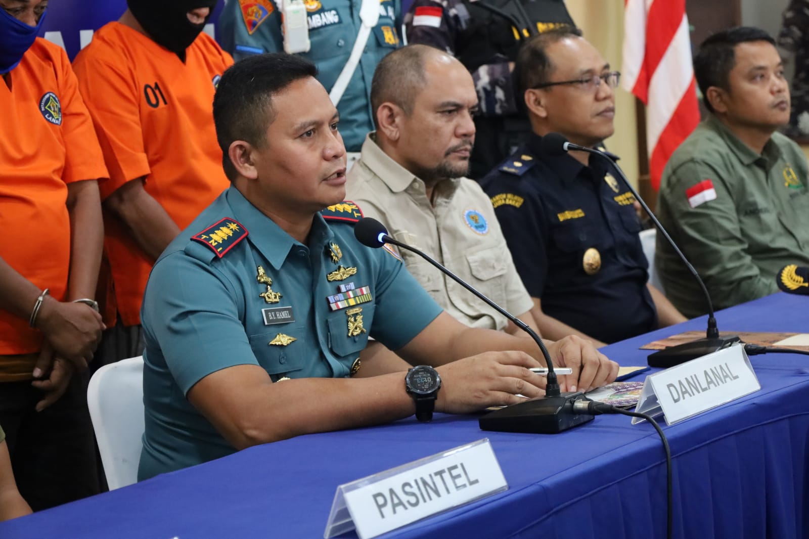 Palapanews – TNI AL, Belawan,- Komandan Pangkalan Utama TNI Angkatan Laut I (Danlantamal I) Brigjen TNI (Mar) Jasiman Purba, S.E., CHRMP., memberikan apresiasi kepada Tim Fleet One Quick Response (F1QR) Lanal Dumai yang telah berhasil menggagalkan penyeludupan Narkotika jenis Sabu-Sabu seberat 11,668 Kg dari Linggi Malaysia, di Perairan Selinsing, Kabupaten Bengkalis, Riau, Senin (15/7/2024).