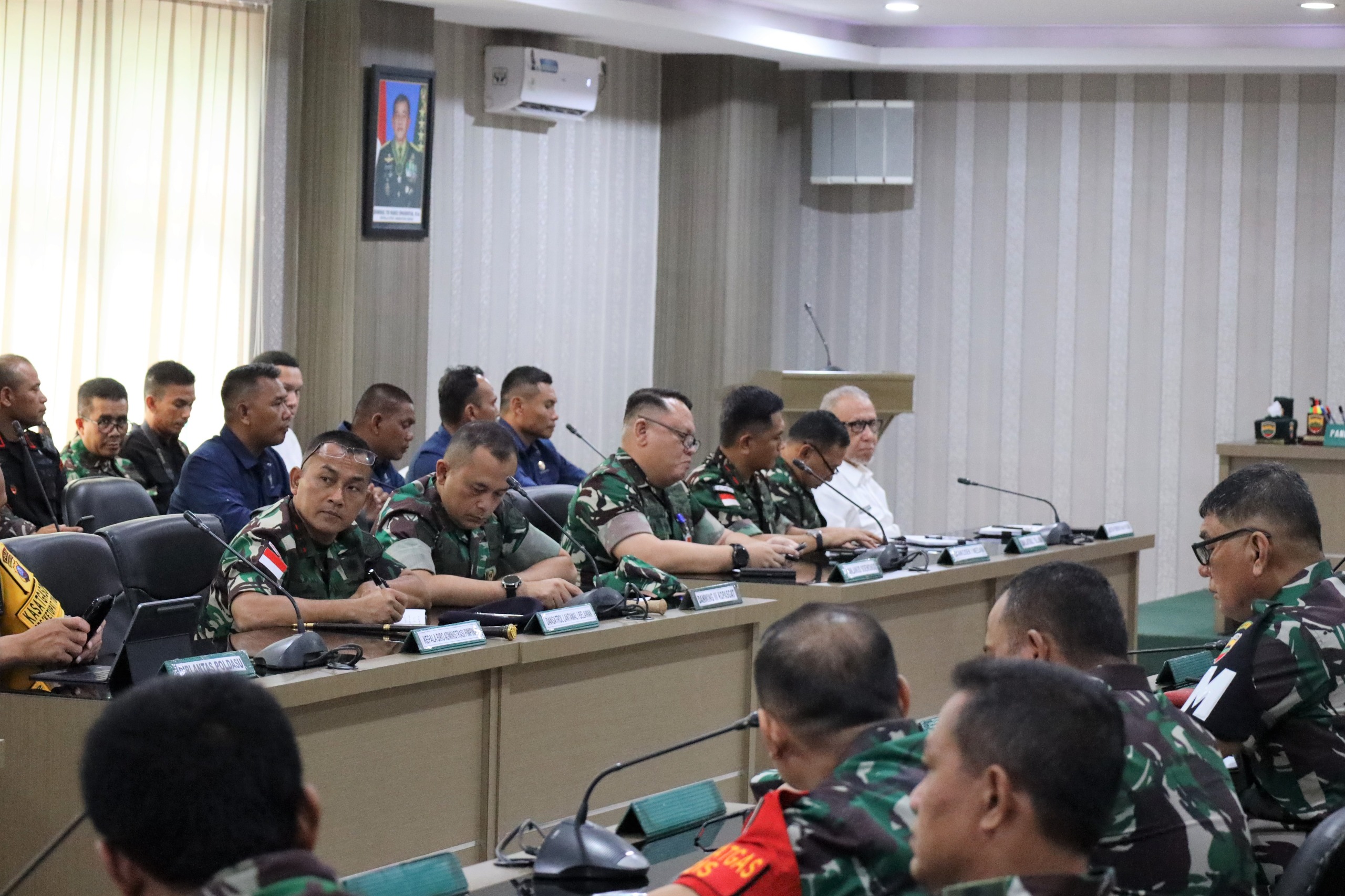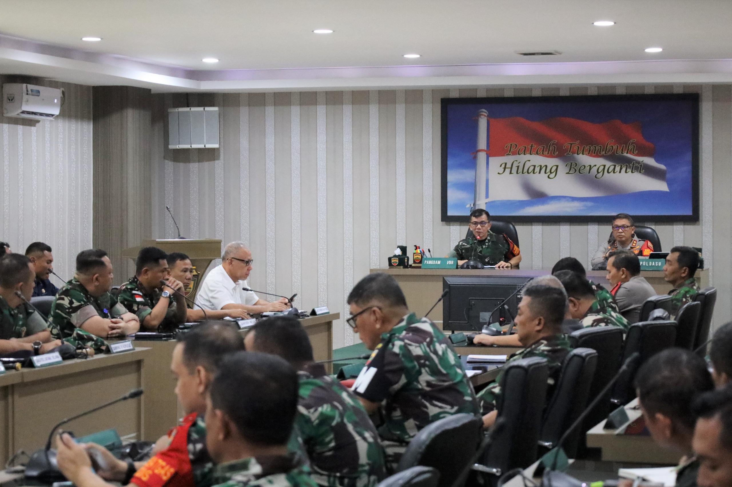 Palapanews – TNI AL, Belawan,- Komandan Pangkalan Utama TNI Angkatan Laut I (Danlantamal I) Brigjen TNI (Mar) Jasiman Purba, S.E., CHRMP., menghadiri Rapat Koordinasi Wilayah (Rakorwil) dalam rangka persiapan kunjungan Presiden RI di Provinsi Sumatera Utara, dipimpin oleh Pangdam I/BB Mayjen TNI Mochammad Hasan Hasibuan, didampingi Kapolda Sumut Irjen Pol Agung Setya Imam Effendi, bertempat di Ruang Bina Yudha Makodam I/BB, Jalan Gatot Subroto, Medan, Sumatera Utara, Selasa (09/4/2024).