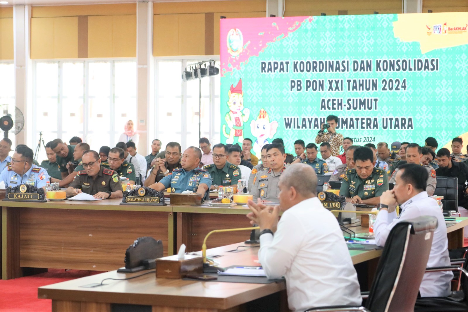 Palapanews – TNI AL, Belawan,- Komandan Pangkalan Utama TNI Angkatan Laut I (Danlantamal) I Brigjen TNI (Mar) Jasiman Purba, S.E., CHRMP., bersama Forkopimda Sumatera Utara menghadiri Rapat Koordinasi PB (Panitia Besar) PON Ke XXI Tahun 2024 Aceh- Sumut, Wilayah Sumatera Utara, dipimpin oleh Pj. Gubernur Sumatera Utara Dr. Drs. H. Agus Fatoni, M.Si., bertempat di Aula Tengku Rizal Nurdin, Medan, Sumatera Utara, Selasa (06/8/2024).