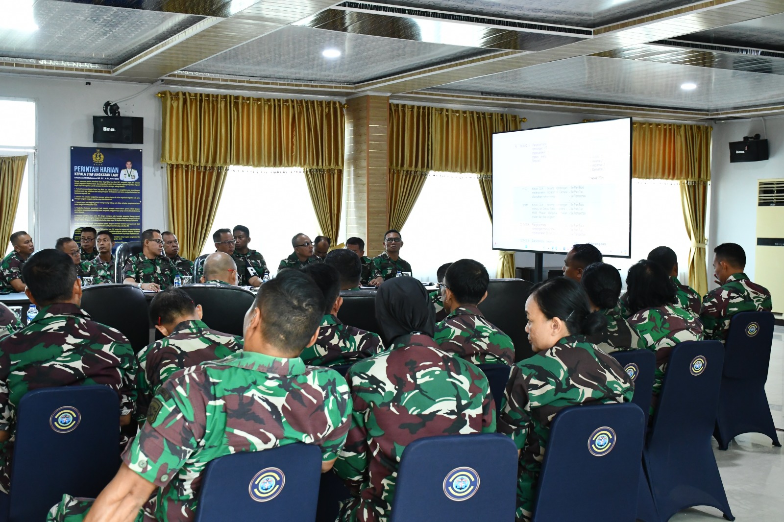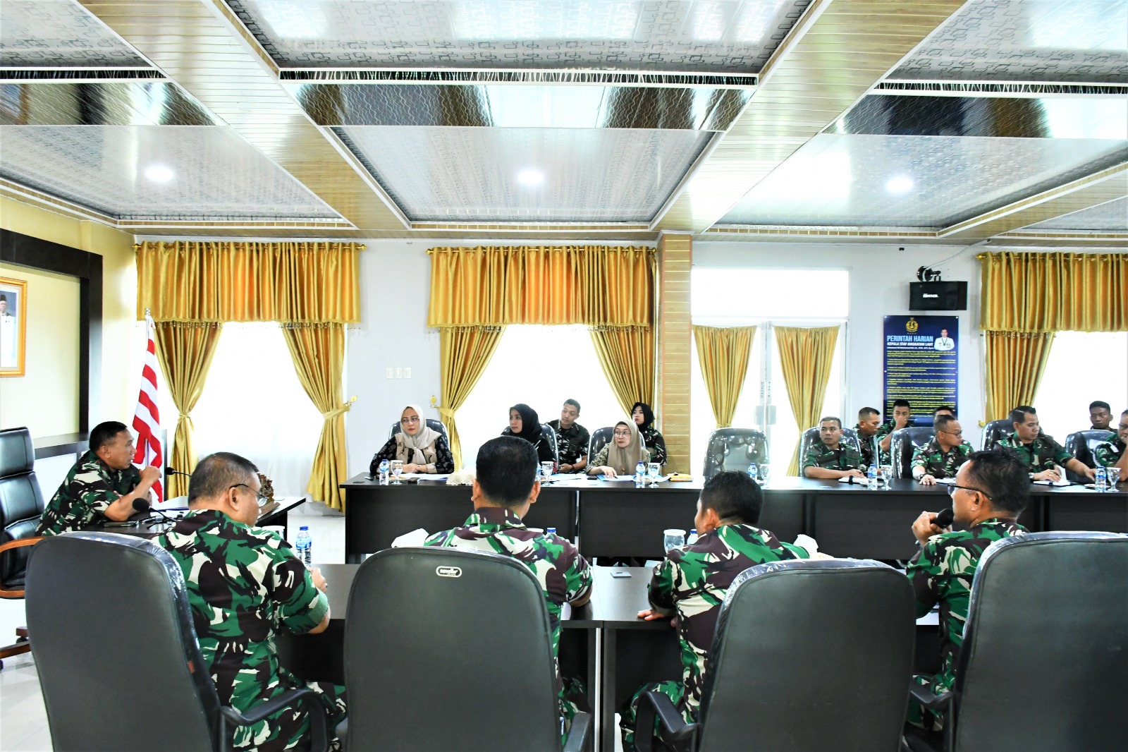 Palapanews – TNI AL, Belawan,- Komandan Pangkalan Utama TNI Angkatan Laut I (Danlantamal I) Brigjen TNI (Mar) Jasiman Purba, S.E., CHRMP., didampingi Ketua Korcab I Daerah Jalasenastri Armada I Ny. Othy Jasiman Purba, memimpin Rapat Staf Lantamal I dalam rangka membahas rencana kunjungan kerja Dankodiklatal Letjen TNI (Mar) Nur Alamsyah dan Pangkoarmada I Laksamana Muda TNI Dr. Yoos Suryono Hadi, M.Tr. (Han)., M.Tr. Opsla., di Lantamal I, bertempat di Gedung R. Mulyadi Mako Lantamal I, Jalan Serma Hanafiah No. 01 Belawan, Sumatera Utara, Jumat (7/6/2024).