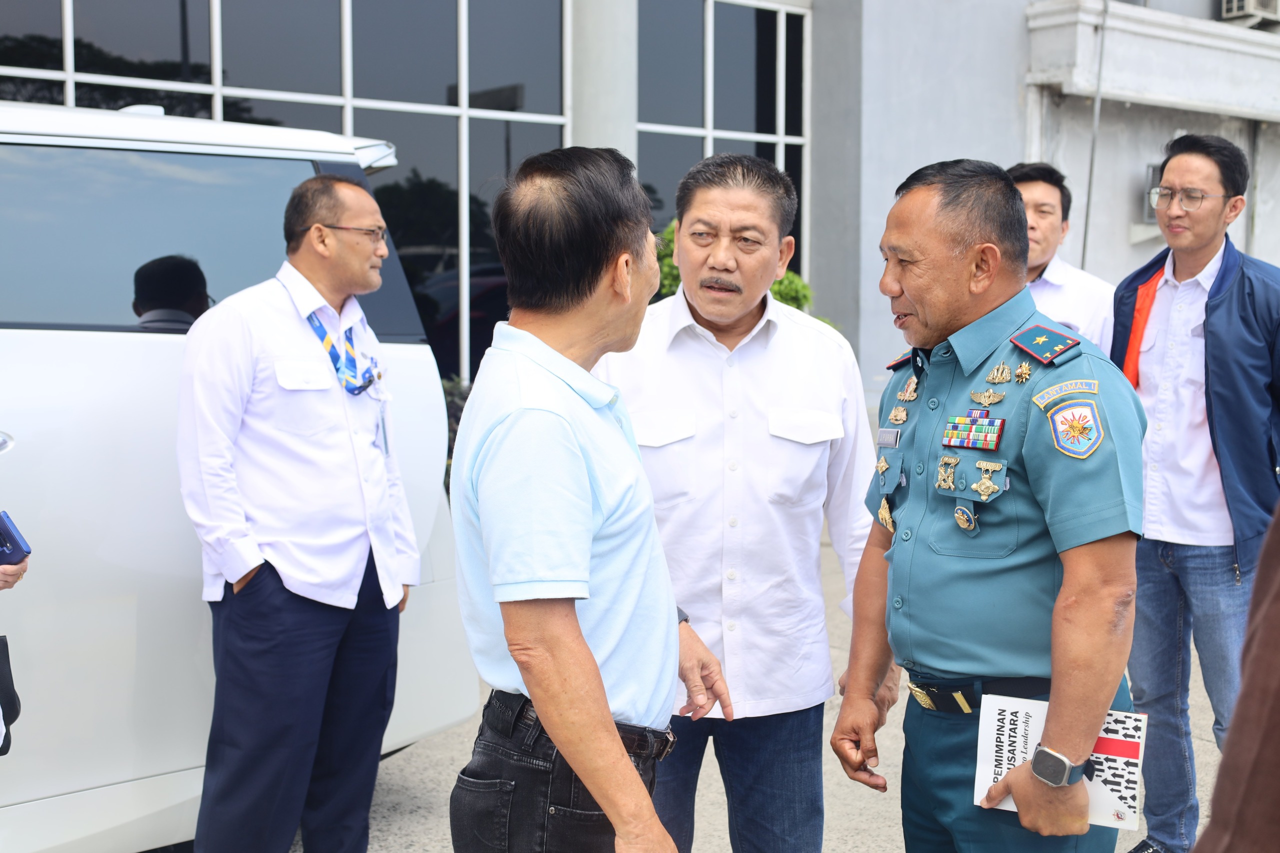 Palapanews – TNI AL, Belawan,- Komandan Pangkalan Utama TNI Angkatan Laut I (Danlantamal I) Brigjen TNI (Mar) Jasiman Purba, S.E., CHRMP., menyambut kedatangan Laksamana TNI (Purn) Prof. Dr. Marsetio, S.I.P., M.M., beserta rombongan, bertempat di VIP Room Bandara Kuala Namoe, Deli Serdang, Sumatera Utara, Senin (26/2/2024).