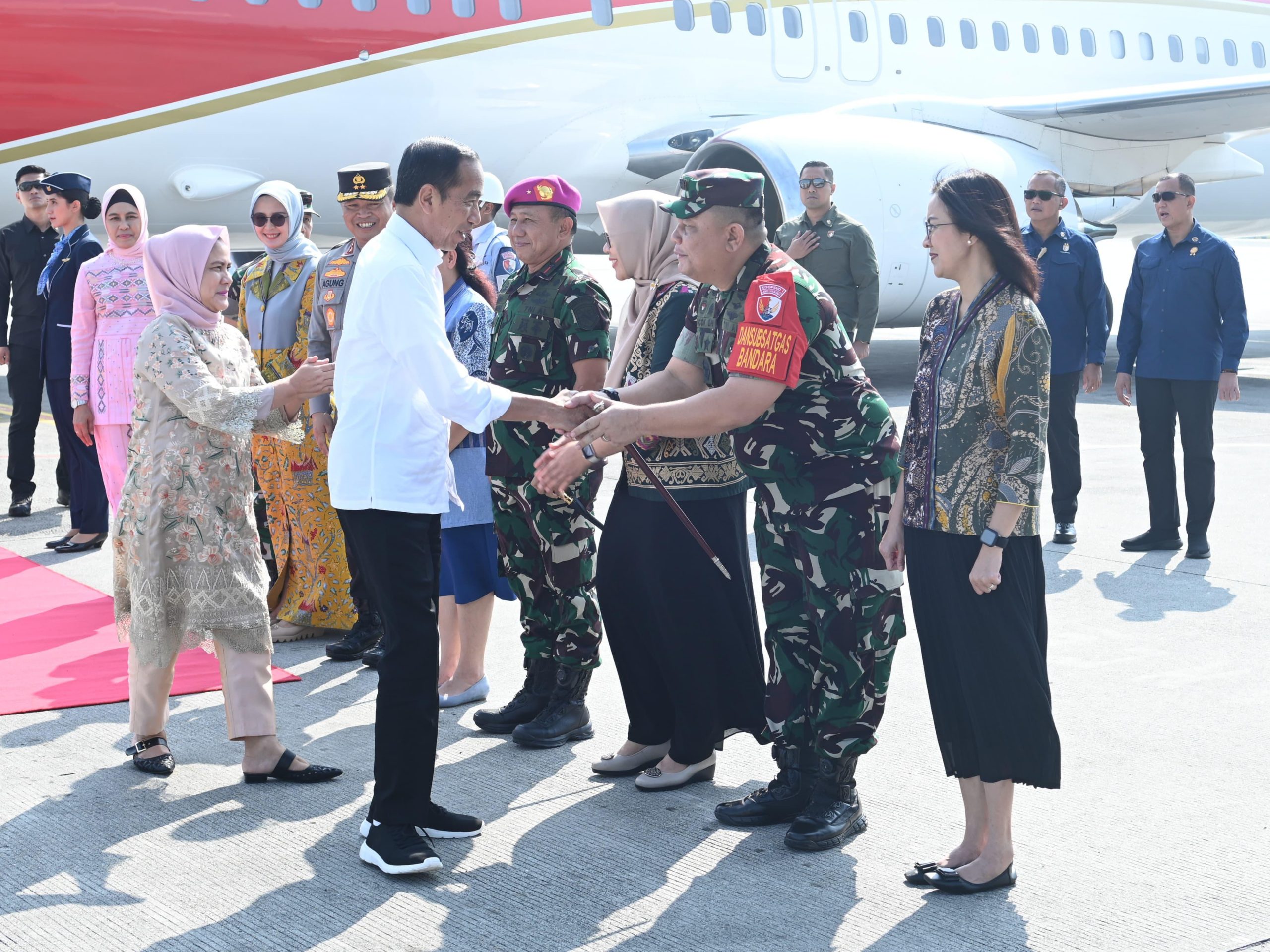 Palapanews – TNI AL, Belawan,- Komandan Pangkalan Utama TNI Angkatan Laut I (Danlantamal I) Brigjen TNI (Mar) Jasiman Purba, S.E., CHRMP., didampingi Ketua Korcab I DJA I Ny. Othy Jasiman Purba menyambut kedatangan Presiden Republik Indonesia Joko Widodo beserta Ibu Iriana Joko Widodo, bertempat di Bandara Internasional Kuala Namoe, Kabupaten Deli Serdang, Sumatera Utara, Kamis (13/3/2024).