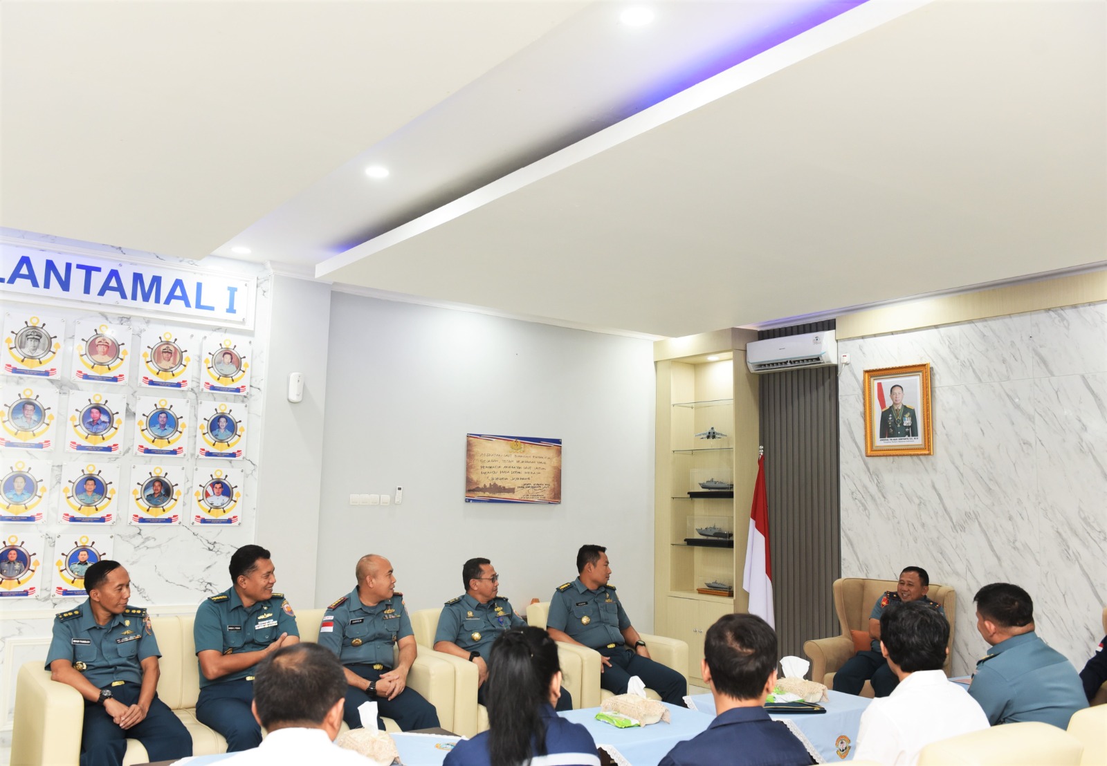 Komandan Lantamal I menyambut baik atas kunjungan tersebut, dan menyampaikan ucapan selamat datang serta berterima kasih kepada rombongan yang telah menyempatkan diri berkunjung di Markas Komando Lantamal I Belawan.