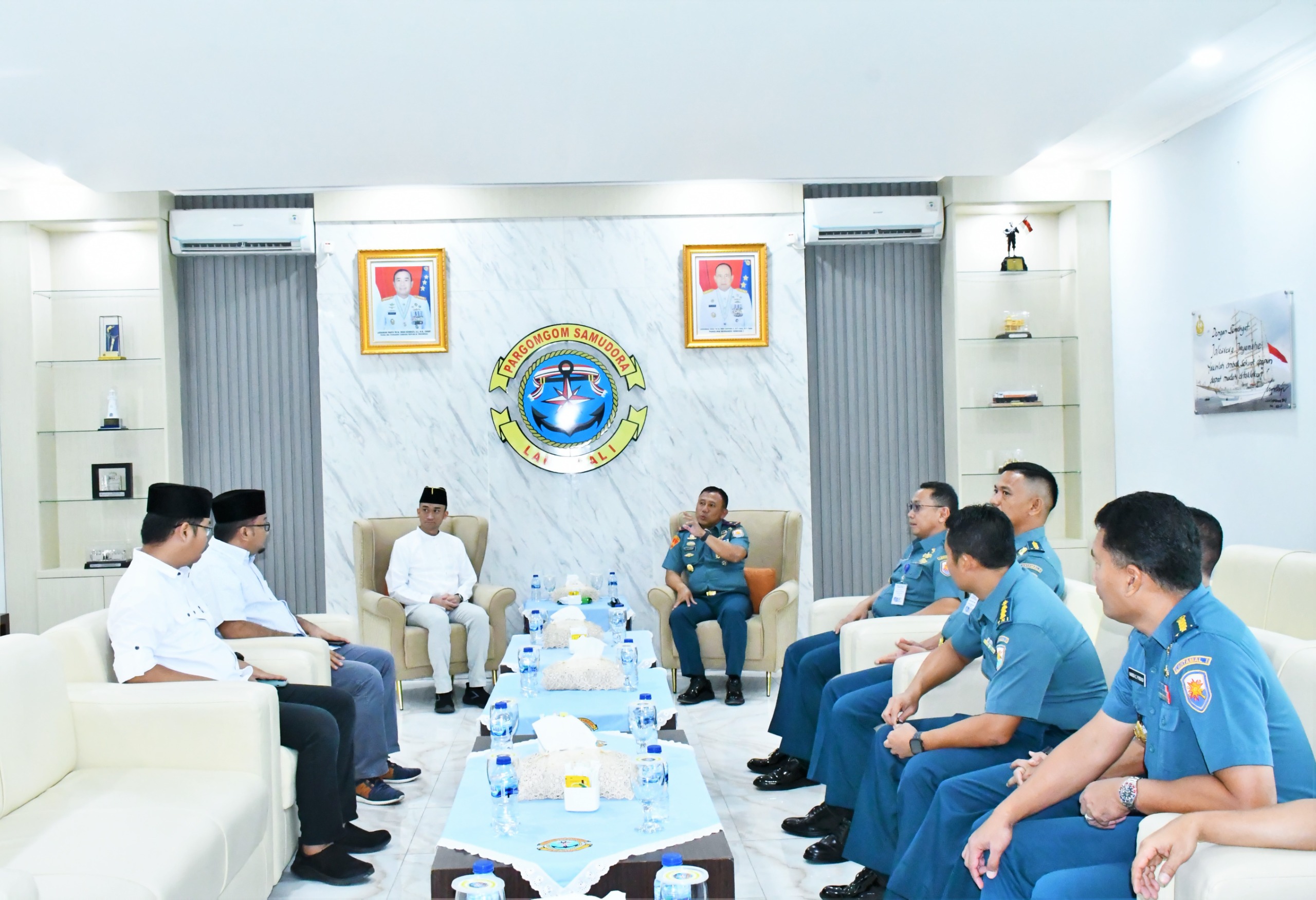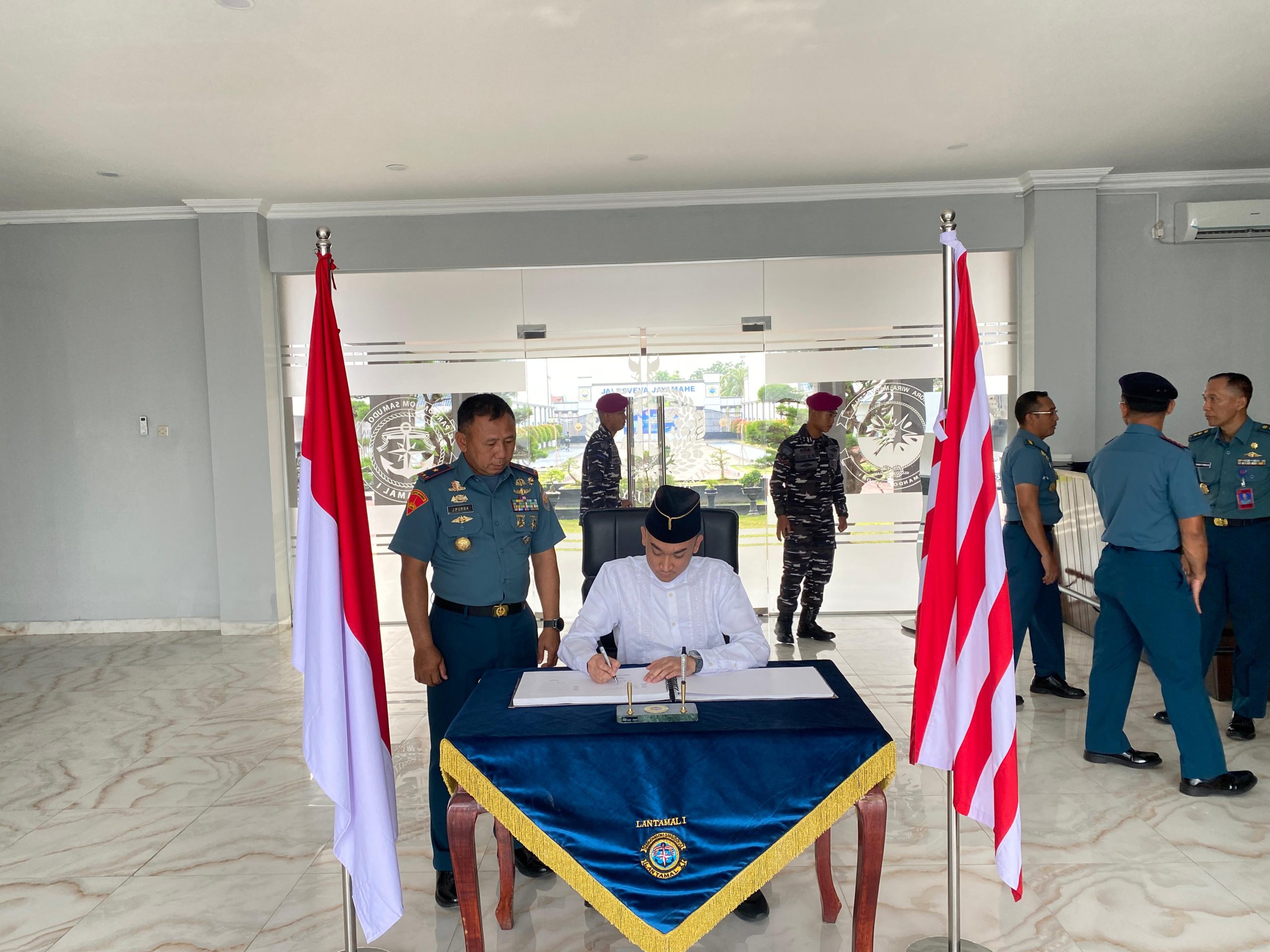 Komandan Lantamal I menyambut baik atas kunjungan tersebut dan menyampaikan ucapan selamat datang serta berterima kasih kepada Sultan Deli XIV beserta rombongan yang telah menyempatkan diri berkunjung di Markas Komando Lantamal I.