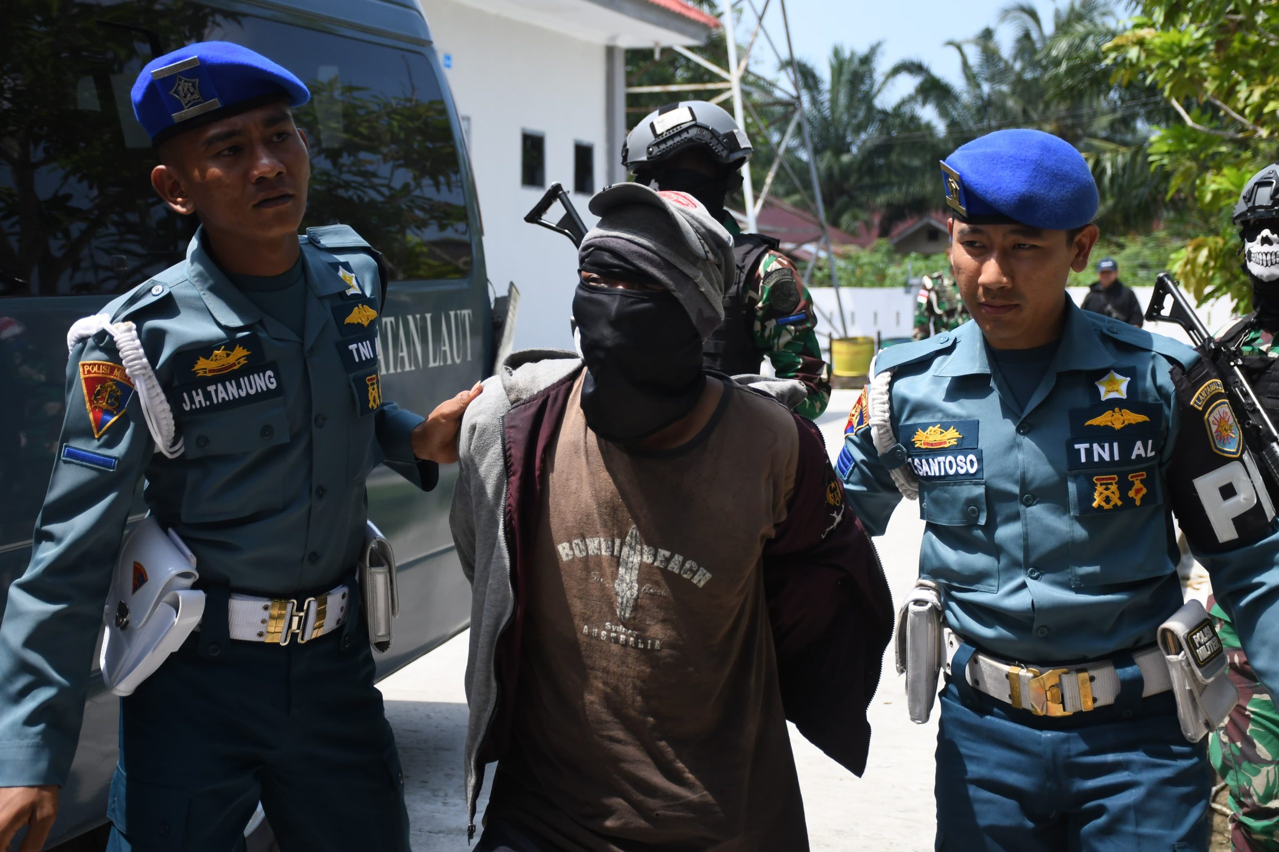 Pukul 11.40 Wib, Tim Gabungan mencurigai sebuah sampan masuk melewati sisi pinggir alur kandas tidak membawa alat tangkap, kemudian dilaksanakan pengejaran terhadap kapal tersebut.