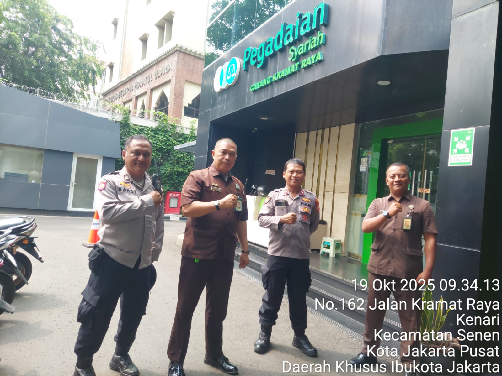 Kegiatan patroli dimulai pukul 09.30 WIB hingga selesai, dipimpin oleh Aiptu Sandi Bintoro selaku PS. Panit III Samapta / Padal 201, bersama Aipda Sriyatno dari Unit Samapta. Patroli menyasar kawasan Gedung Pegadaian, Jl. Kramat Raya No.162, Kelurahan Kenari, Kecamatan Senen, Jakarta Pusat.