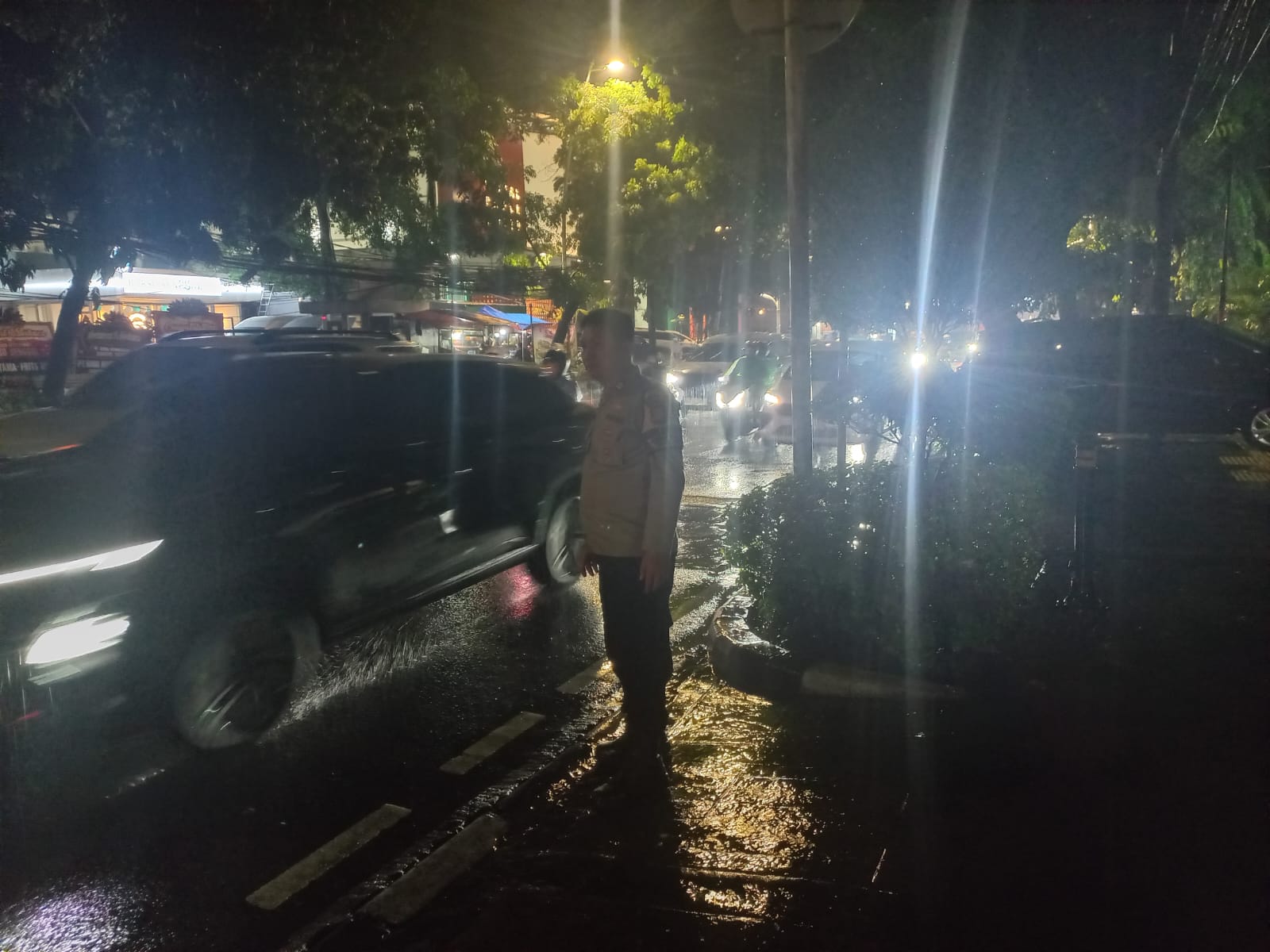 Palapanews.asia Jakarta Pusat – Jumat Malam, 31 Oktober 2025, Anggota Polsek Metro Tanah Abang, Aiptu Suhartono Bhabinkamtibmas Kelurahan Kebon Kacang melaksanakan pengecekan lokasi yang terdampak genangan air dan pohon tumbang akibat hujan deras yang terjadi pada Jumat sore hingga malam hari.