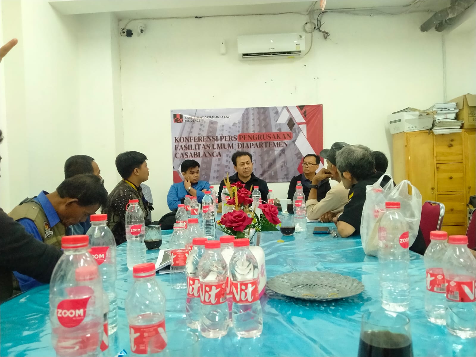 PALAPANEWS,MY.ID JAKARTA.COM Konfrensi pers yang di lakukan pengurus Apartemen dan juga sebagai ketua PPPSRS Khairul Iman, SE.M.UD.MA di Apartemen Casablanca East Residence telah melakukan pelaporan kepolda metro jaya Kamis 11/7/2024 dengan di dampingi pengacara Ali Amsar Lubis ,SH.Elly Susanti ,SSI. adanya Perusakan yang terjadi di Apartemen Casablanca East Residence jln Pahlawan Revolusi pondok bambu Jakarta timur.