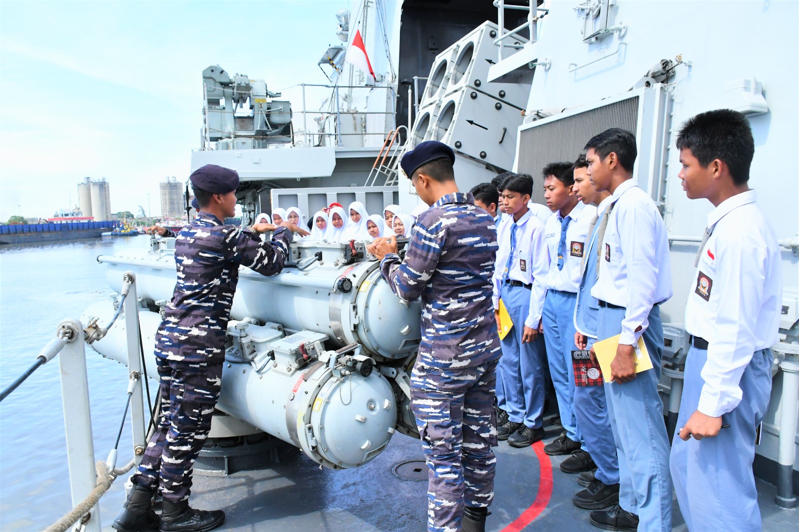 PALAPANEWS – TNI AL, Belawan,- Komando Daerah TNI Angkatan Laut (Kodaeral I) menerima kunjungan siswa-siswi SMA Hikmatul Fadhilah di Mako Kodaeral I dan KRI Bung Tomo-357 yang sandar di Dermaga 200 Ujung Baru Pelabuhan Umum Belawan, Senin (25/8/2025).