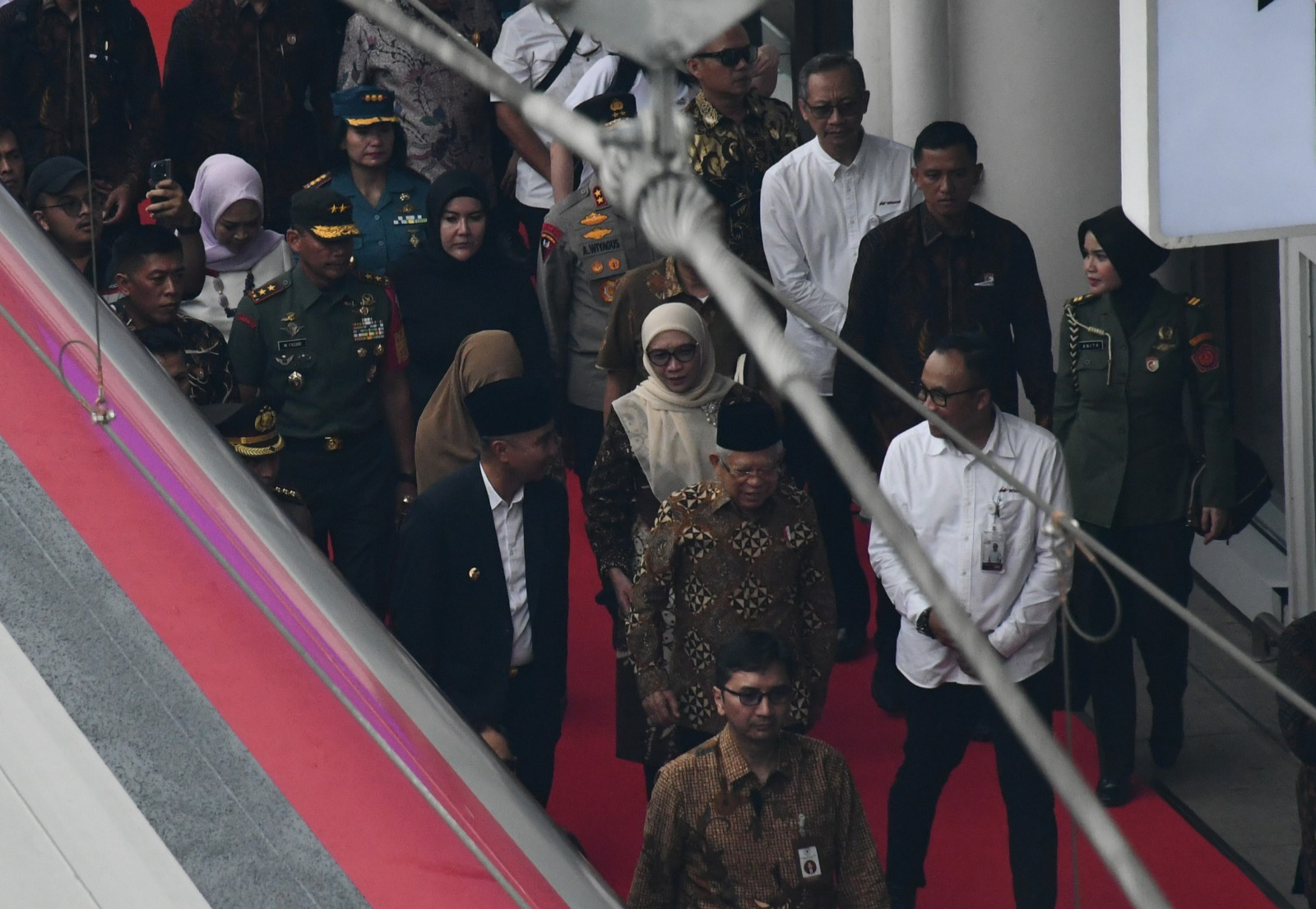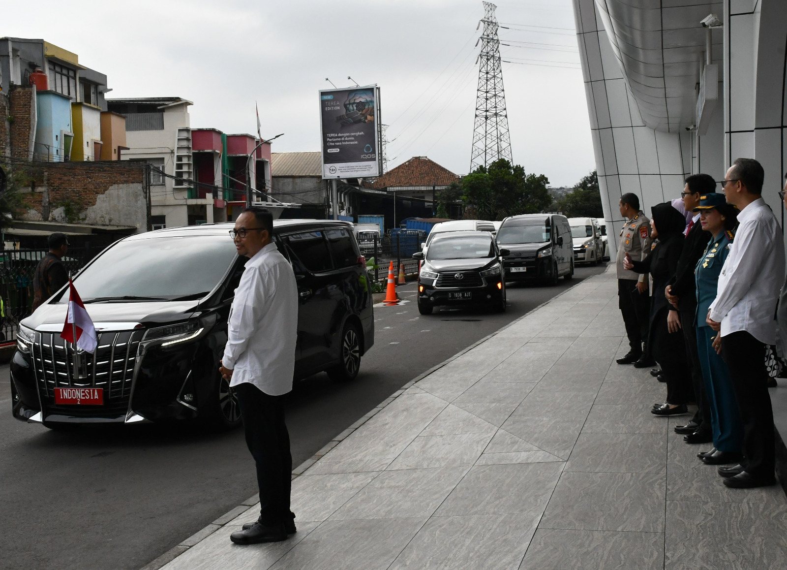 Dengan menggunakan Kereta Cepat Indonesia Cina (KCIC) dari Jakarta dalam rangka dalam kunjungan kerja di Wilayah Kota Bandung Tahun 2024 dan disambut Pj. Gubernur Jawa Barat Bey Machmudin beserta istri dan Unsur FKPD Provinsi Jawa Barat.