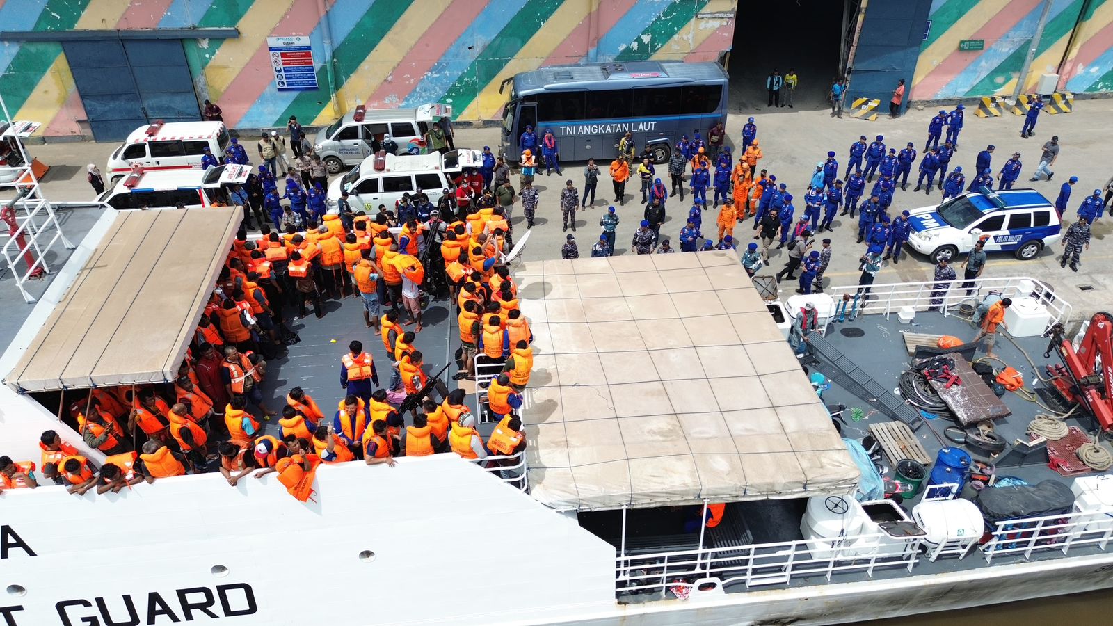Setibanya KN Singa Laut Bakamla RI di Pelabuhan Trisakti Kota Banjarmasin Kalimantan Selatan pada pukul 13.00 WITA, dilaksanakan pendataan dan pengecekan kesehatan terhadap ABK dan Penumpang KN. Niki Sejahtera.