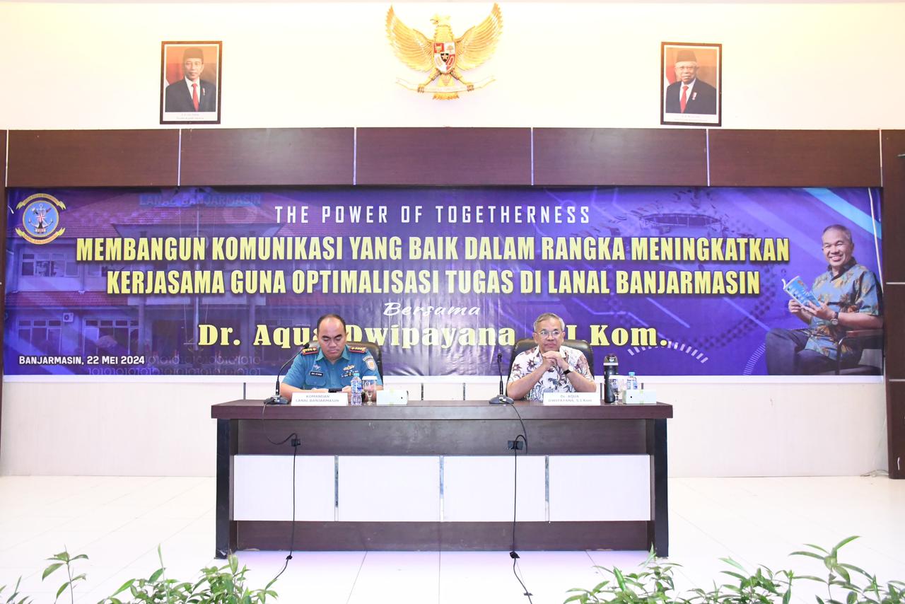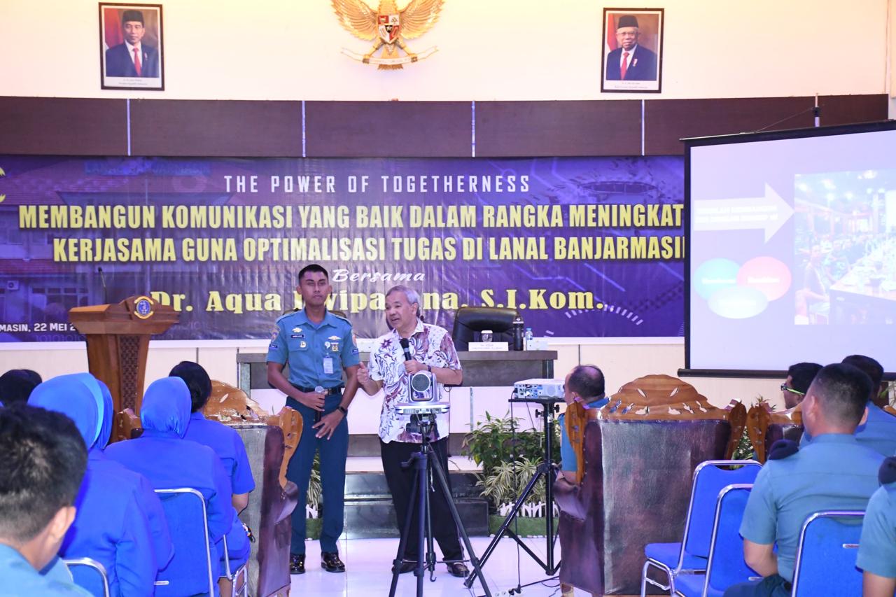 Sementara itu, Dr. Aqua Dwipayana, M.I.Kom., menyampaikan bahwa salut atas keteladanan Danlanal Banjarmasin dalam membina Prajurit serta Jalasenastri yang terlihat dari antusias prajurit dalam menyimak saat kegiatan berlangsung.