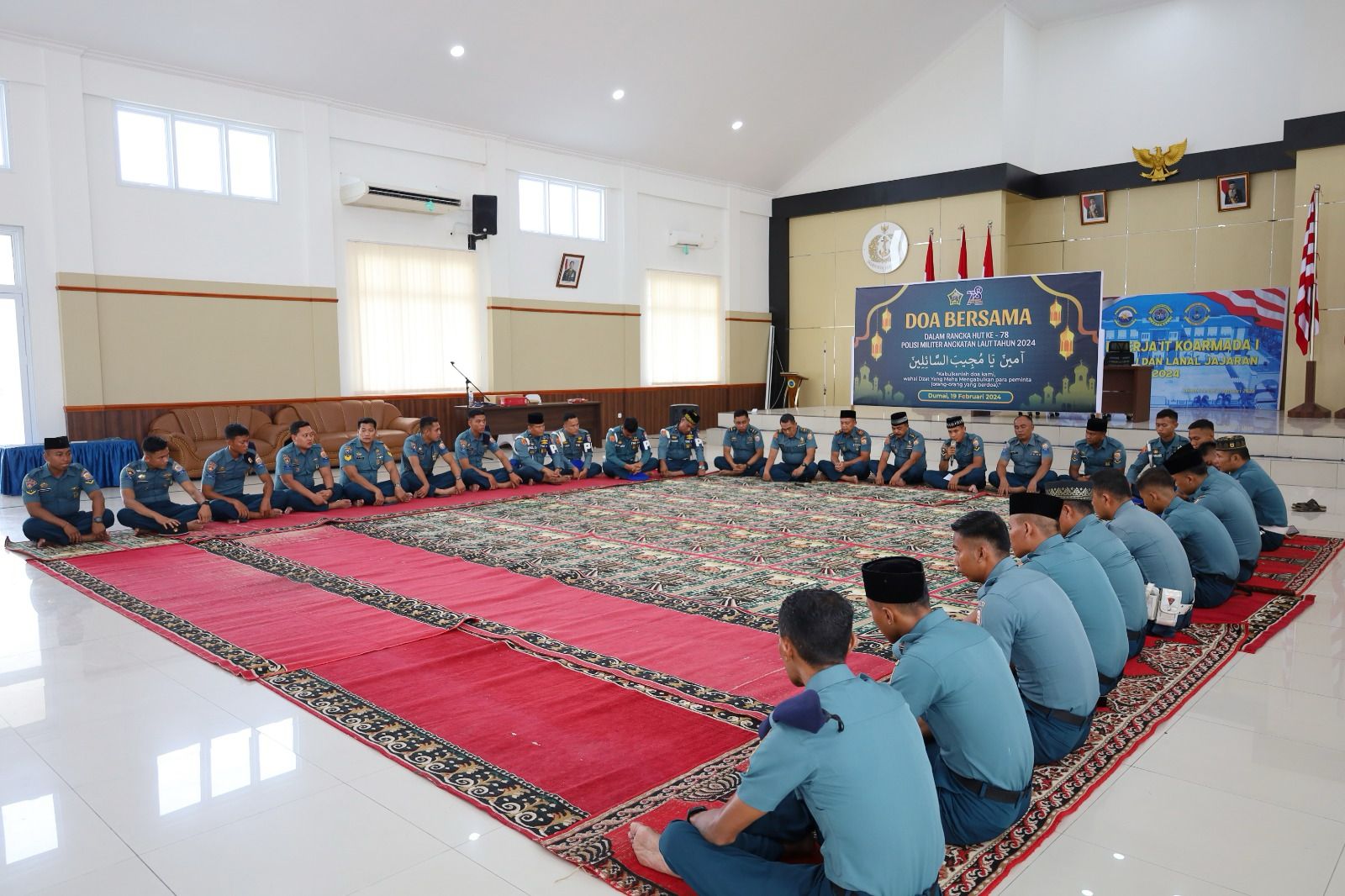 Palapanews.my.id TNI AL, Dumai,- Dalam rangka memperingati HUT Ke-78 Pomal Tahun 2024, Lanal Dumai menggelar Doa bersama yang dilaksanakan terpusat dari Mako Puspomal Kelapa Gading Jakarta Utara yang diikuti secara daring dari Gedung Wijaya Kusuma Mako Lanal Dumai, Senin (19/02/2024).