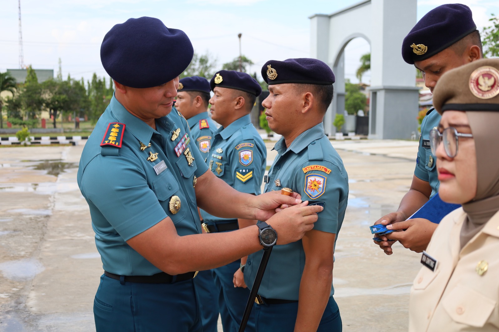 Palapanews – TNI AL, Dumai,- Komandan Lanal Dumai Kolonel Laut (P) Boy Yopi Hamel pimpin Upacara Peresmian Kenaikan Pangkat (Kenkat) Perwira, Bintara, Tamtama dan PNS Lanal Dumai periode 01 April 2024, bertempat di Lapangan Apel Mako Lanal Dumai, Jalan Yos Soedarso No. 1, Kelurahan Buluh Kasap, Kecamatan Dumai Timur Kota Dumai, Rabu (03/04/2024).