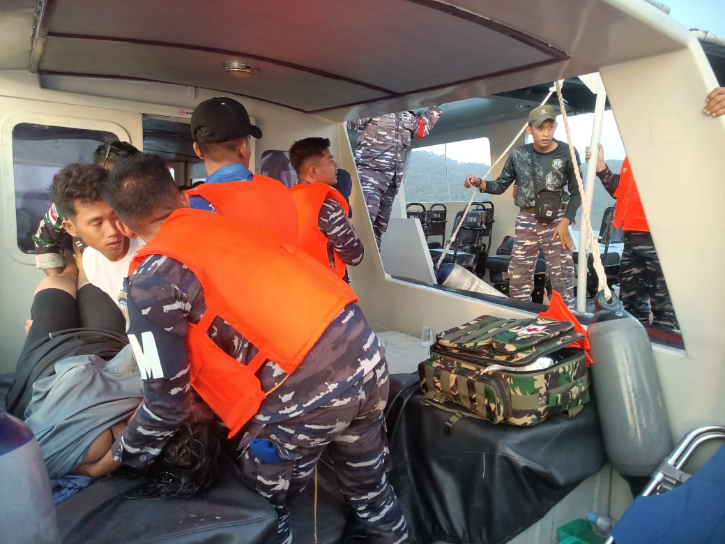 Sementara itu, Kepala Balai Pengobatan Lanal Tarempa bersama Bakes berjibaku melaksanakan penanganan pertama dari proses evakuasi korban di laut hingga dievakuai ke RSUD Tarempa.