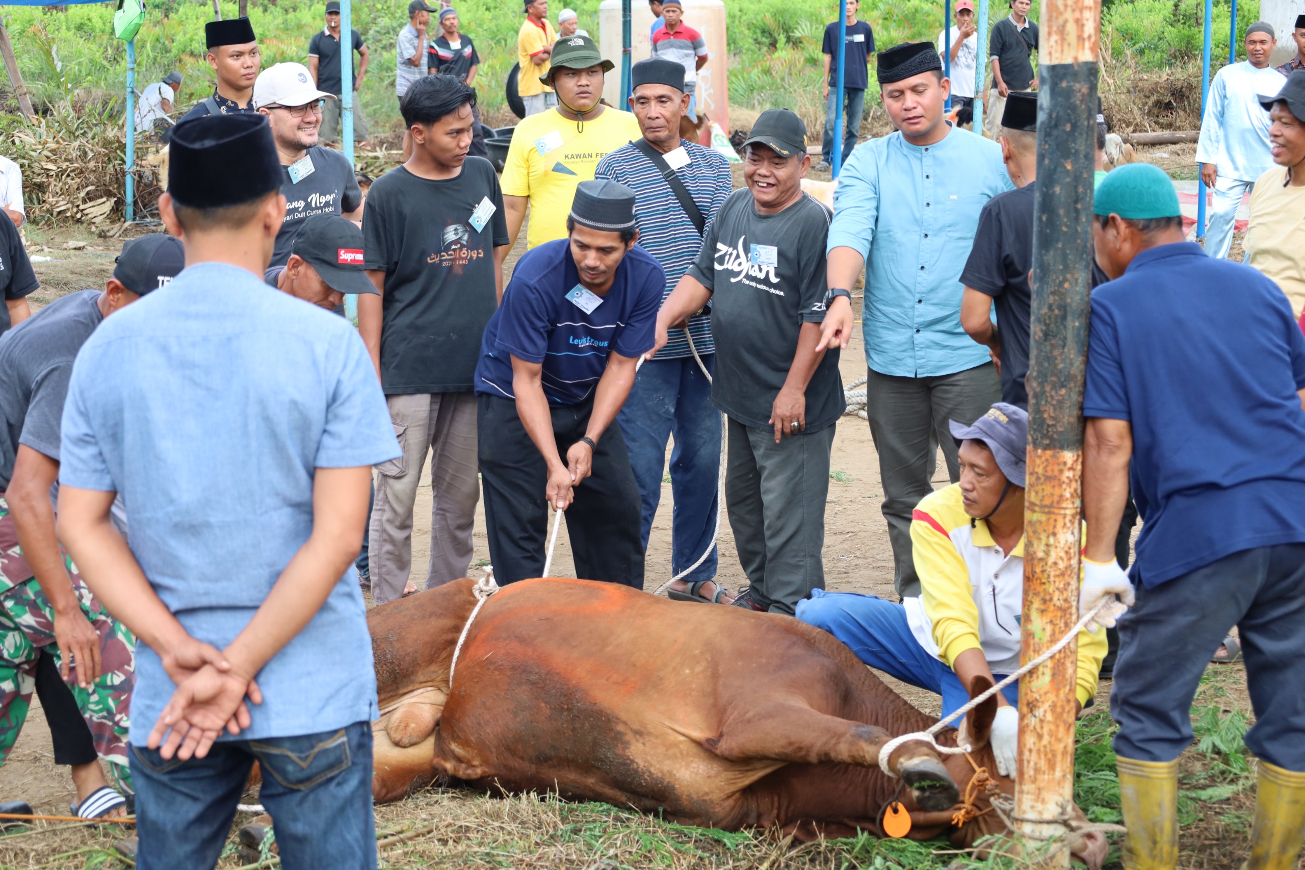 Penyerahan dan penyembelihan Hewan Kurban dilaksanakan di Masjid Baitut Thoyyibin dihadiri Perwira Rohani Lettu Laut (T) Agung Dwi Yandik, Panitia Kurban, Tokoh Agama, serta masyarakat sekitar Komplek TNI AL Jalan Patimura Dumai.