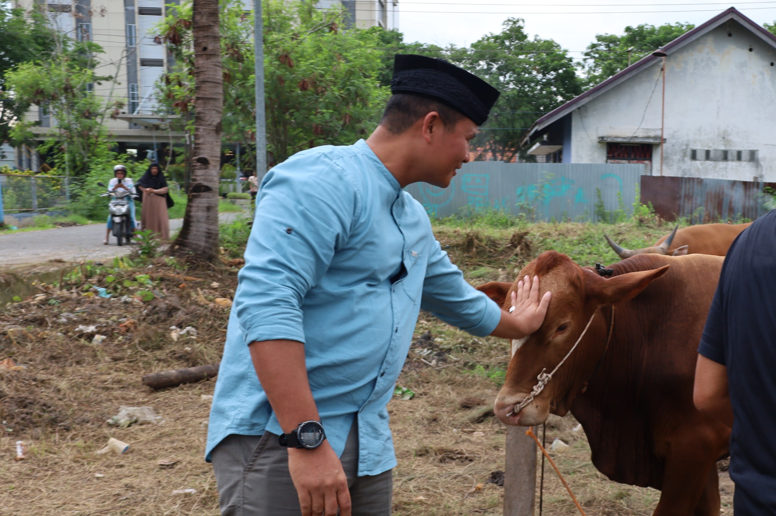Palapanews – TNI AL, Dumai,- Setelah melaksanakan rangkaian ibadah Sholat Idul Adha 1445 H/2024 M yang dilaksanakan di Mako Lanal Dumai, Komandan Pangkalan TNI AL Dumai Kolonel Laut (P) Boy Yopi Hamel didampingi Ketua Jalasenastri Cabang 4 Korcab I DJAI Ny. Gressy Hamel melaksanakan penyerahan Hewan Kurban pada Hari Raya Idul Adha 1445H/2024 M kepada Panitia Kurban yang dilaksanakan di Masjid Baitut Thoyyibin Komplek TNI AL Dumai, Jalan Pattimura, Laksamana, Kecamatan Dumai Barat, Kota Dumai, Senin (17/06/2024).