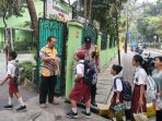 Polisi Humanis, Bhabinkamtibmas Gondangdia Atur Lalu Lintas dan Antar Siswa SDN Gondangdia 03 ke Sekolah