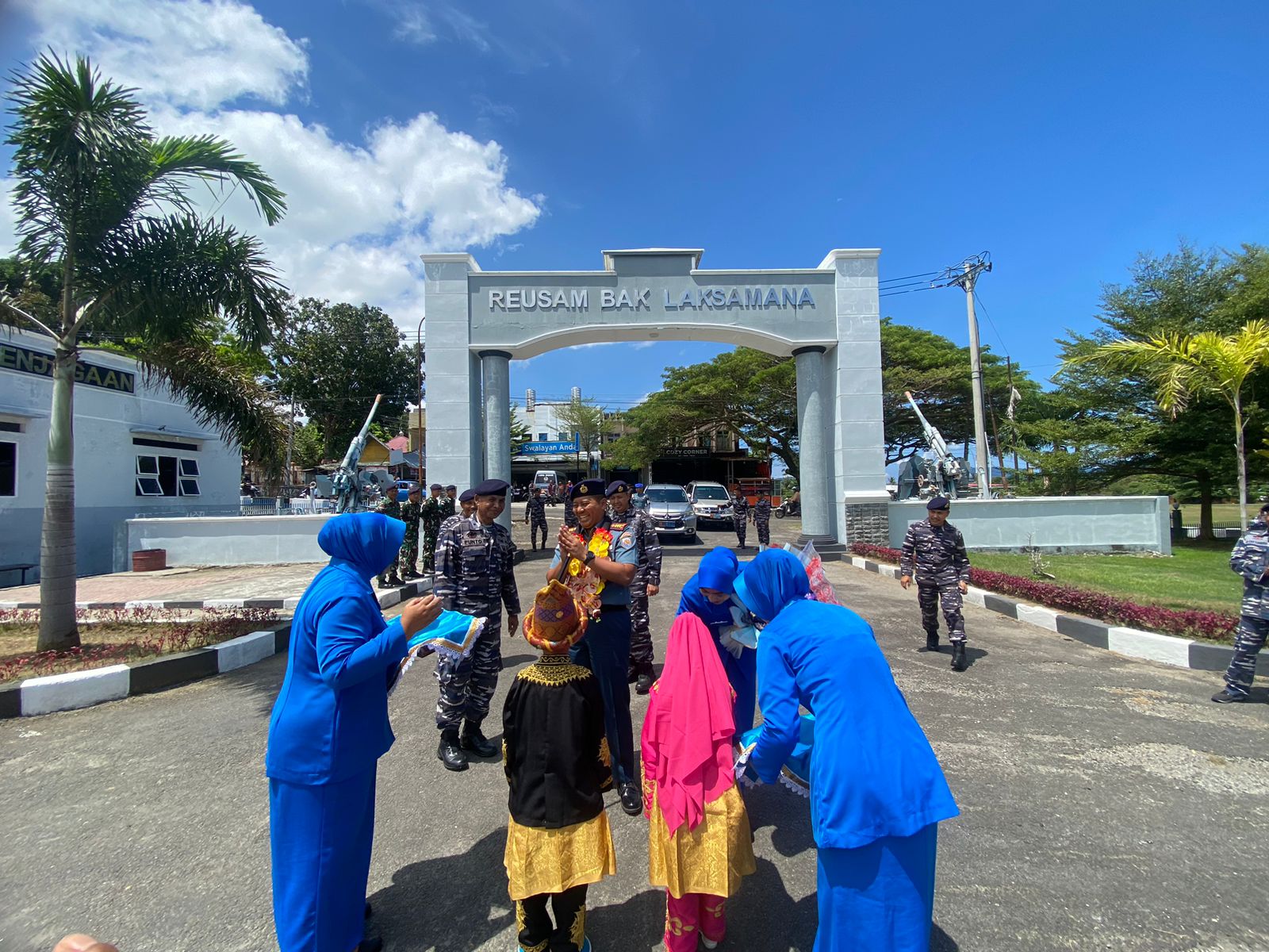 Palapanews – TNI AL, Sabang, – Pasops Lanal Sabang Mayor Laut (P) Syafarudin bersama seluruh Personel Lanal Sabang menyambut kedatangan Komandan Lanal Sabang Kolonel Laut (P) Gita Muharam, M.Sc., bertempat di Mako Lanal Sabang, Jalan Yos Sudarso, Cot Ba’u, Kecamatan Sukajaya, Kota Sabang, Rabu (3/4/2024).