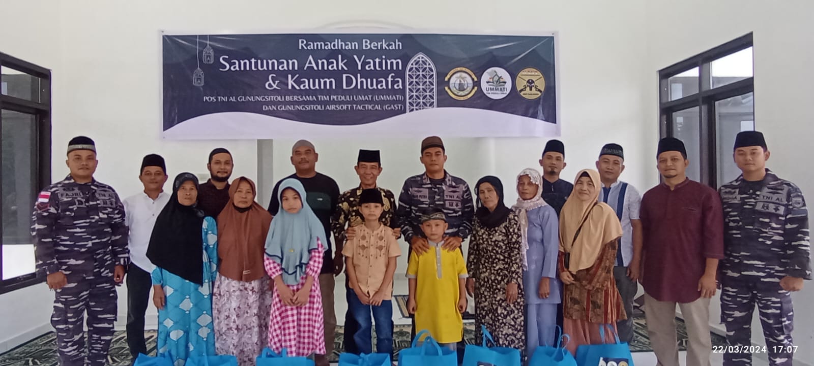 Palapanews – TNI AL, Teluk Dalam,- Peduli Anak Yatim dan Kaum Dhuafa, Posal Gunungsitoli Lanal Nias bekerja sama dengan organisasi TPU (Tim Peduli Umat) dan Gast (Gunungsitoli Airsoft Tactical) mengadakan kegiatan Ramadhan Berkah (Santunan Anak Yatim dan Kaum Dhuafa) di Mushola As Syuhada Pos TNI AL Gunungsitoli, Jumat (22/3/2024).