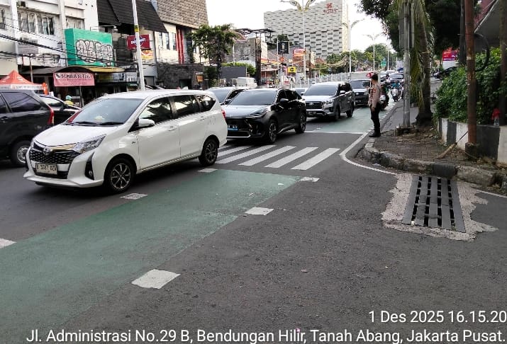 Palapanews.asia Jakarta Pusat – Dalam rangka menjaga kelancaran mobilitas masyarakat pada jam sibuk sore hari, personel Polsek Metro Tanah Abang kembali melaksanakan pengaturan arus lalu lintas di kawasan Traffic Light Penjernihan, Benhil, Tanah Abang, Jakarta Pusat. Senin (1/12/2025).