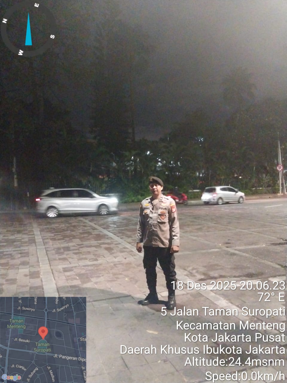 Taman Suropati yang merupakan salah satu ikon ruang terbuka hijau di Jakarta Pusat tetap ramai dikunjungi warga hingga malam hari, baik untuk berolahraga ringan, bersantai, maupun sekadar melintas. Kondisi tersebut menjadi perhatian jajaran kepolisian untuk mengantisipasi potensi gangguan kamtibmas dan kejahatan malam hari, seperti pencurian, penjambretan, dan gangguan ketertiban umum lainnya.