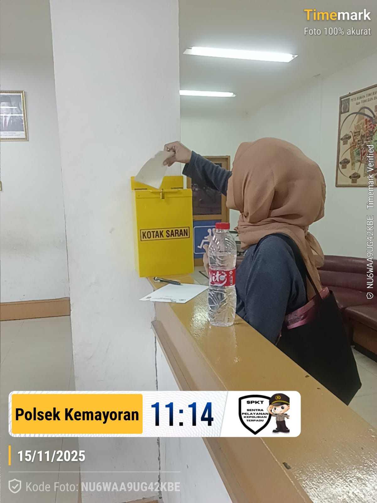 Palapanews.asia.Jakarta Pusat – Polsek Kemayoran menerima sejumlah umpan balik positif dari masyarakat melalui kotak saran Pelayanan Sentra Pelayanan Kepolisian Terpadu (SPKT) pada hari Sabtu 15 November 2025. Selama rentang waktu pukul 08.00 hingga 16.00 WIB, tercatat sebanyak enam lembar kritik dan saran dari warga yang memuji kecepatan, keramahan, dan profesionalisme petugas SPKT.