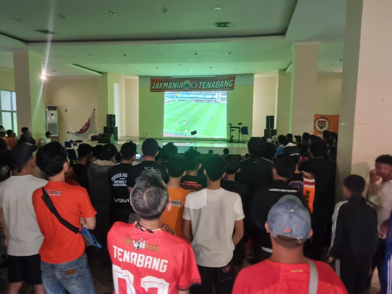 Menjelang pertandingan, panitia mempersiapkan sarana nonton bareng dengan memasang empat layar, yang terdiri dari satu layar utama di Aula Tengah, dua layar di sisi kiri dan kanan aula, serta satu layar tambahan di depan gedung dalam tenda, guna mengakomodir seluruh peserta yang hadir.