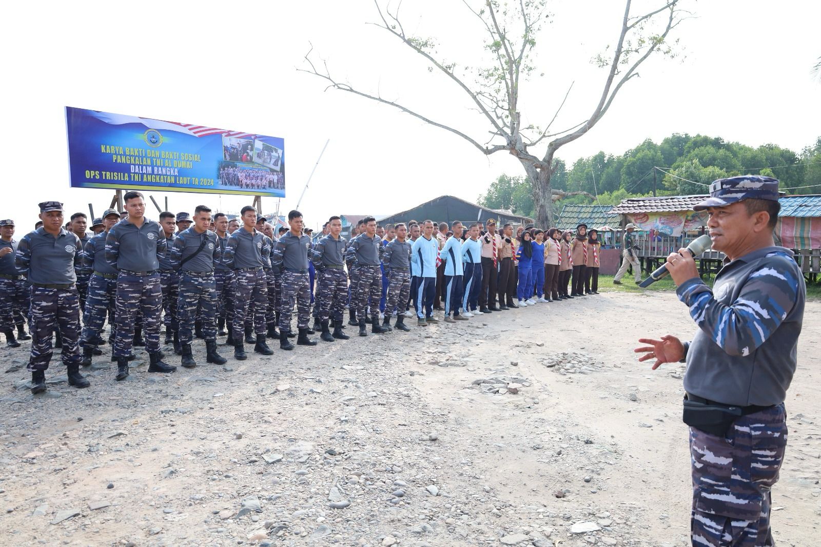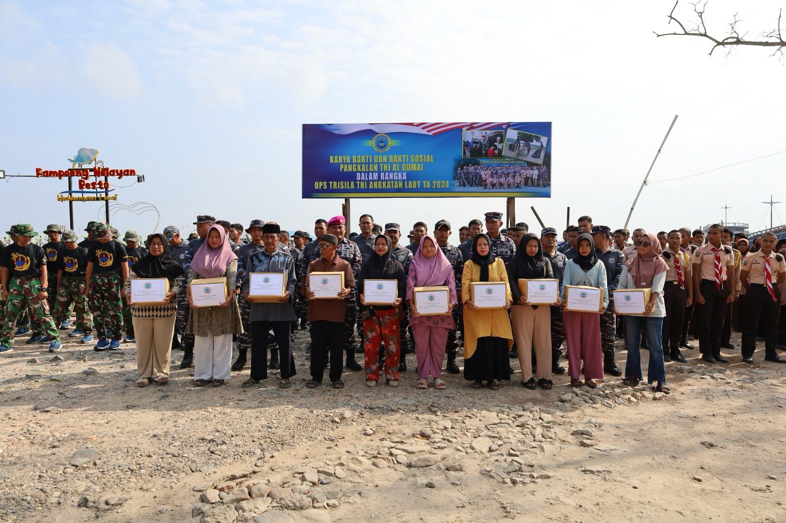 Palapanews – TNI AL, Dumai,- Satuan Tugas Operasi Trisila TNI AL Tahun 202 4 bersama Lanal Dumai beserta Saka Bahari melaksanakan Karya Bakti bersih-bersih pantai dan Bakti Sosial kepada masyarakat pesisir yang dilaksanakan di Kampung Nelayan, Jalan Nelayan Laut, Pangkalan Sesai, Kecamatan Dumai Barat, Kota Dumai, Sabtu (23/03/2024).