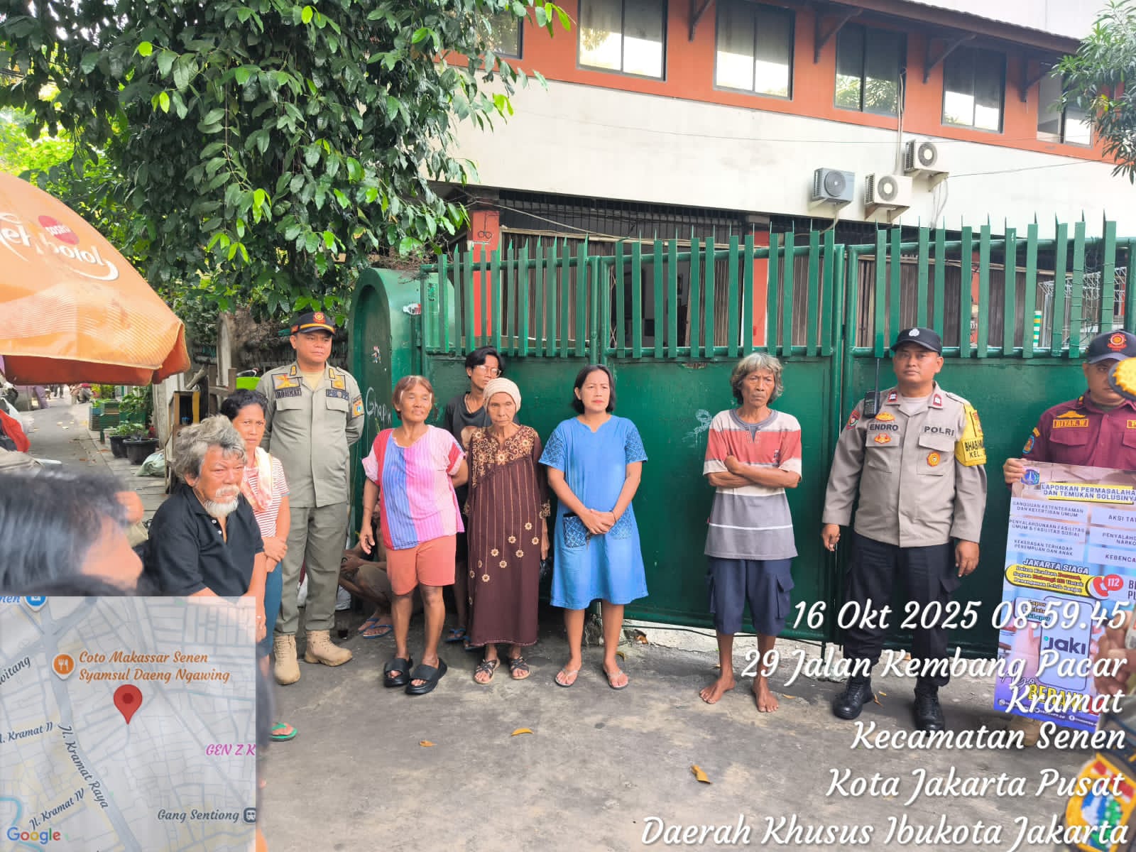 Kegiatan yang berlangsung sejak pukul 09.00 WIB ini digelar di Pasar Gaplok dan Jalan Kembang Pacar, Kelurahan Kramat, Kecamatan Senen, Jakarta Pusat. Turut hadir Bhabinkamtibmas Kramat Aiptu Endro Cahyono, Babinsa Kramat, dan petugas Satpol PP.