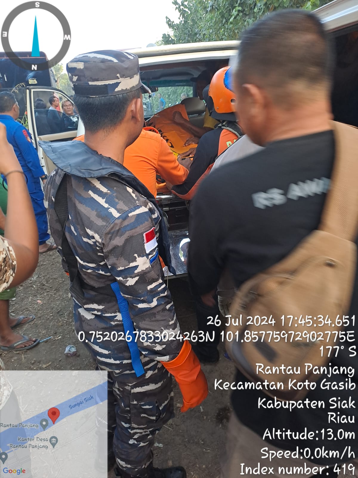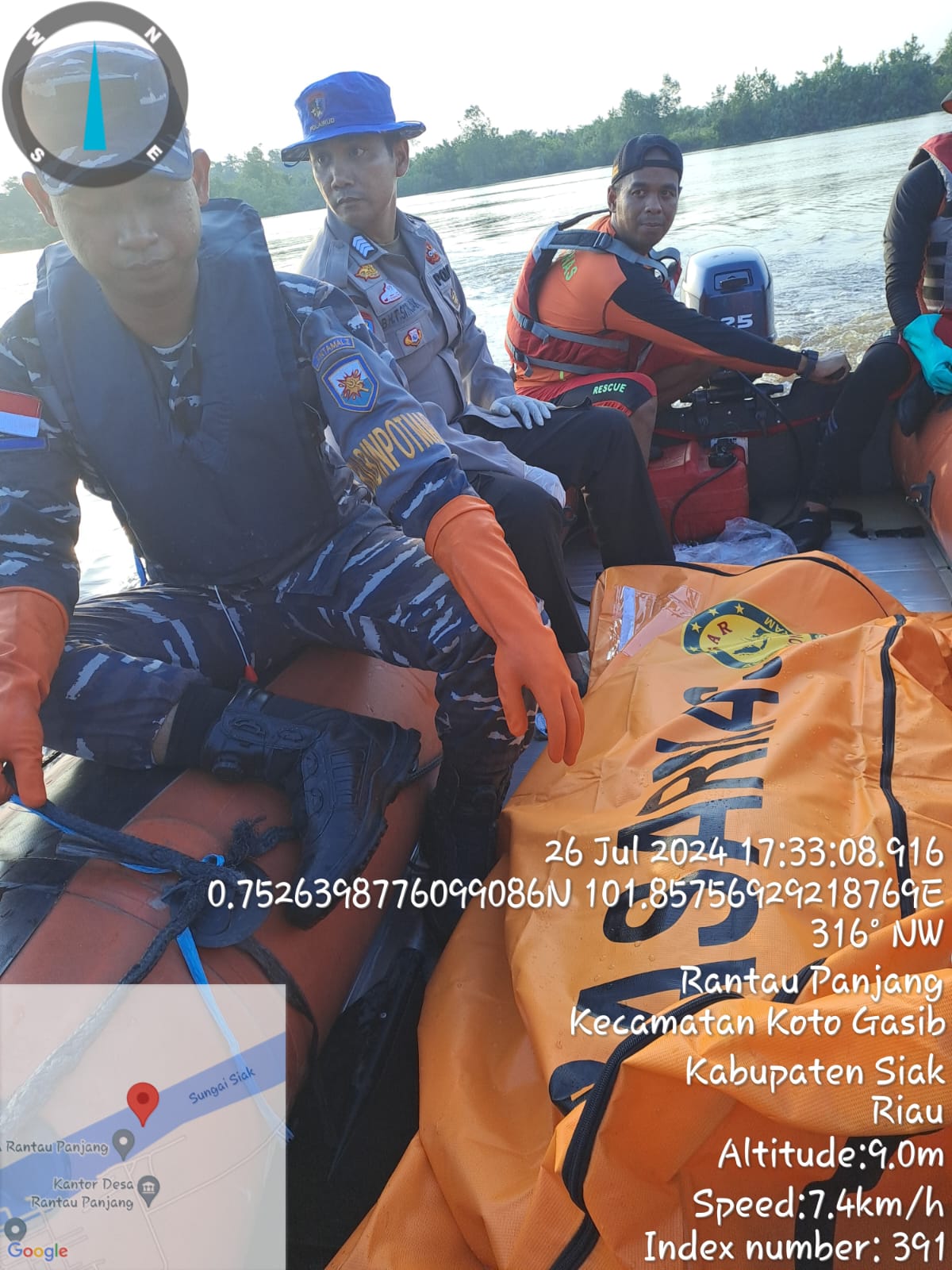 Lokasi penemuan jenazah korban meninggal dunia tidak jauh dari titik hilangnya korban disekitar Perairan Sungai Siak, Desa Rantau Panjang, Kecamatan Koto Gasib, Kabupaten Siak.