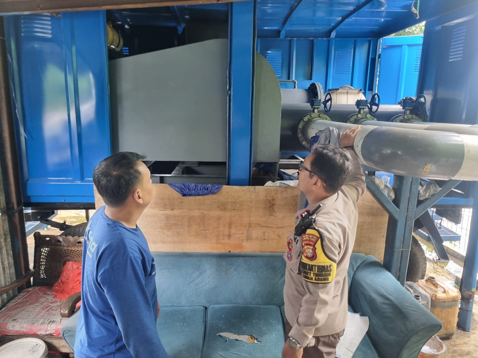 Selain memantau kondisi lingkungan, Aiptu Suparmin juga melakukan pengecekan terhadap sarana pompa air yang tersedia. Diketahui bahwa Pompa Air Rusun Karet Tengsin memiliki satu unit mesin pompa air jenis Indobara MP.04 dengan kapasitas 500 liter per detik. Mesin pompa tersebut berada dalam kondisi baik dan berfungsi secara normal tanpa adanya kendala teknis.