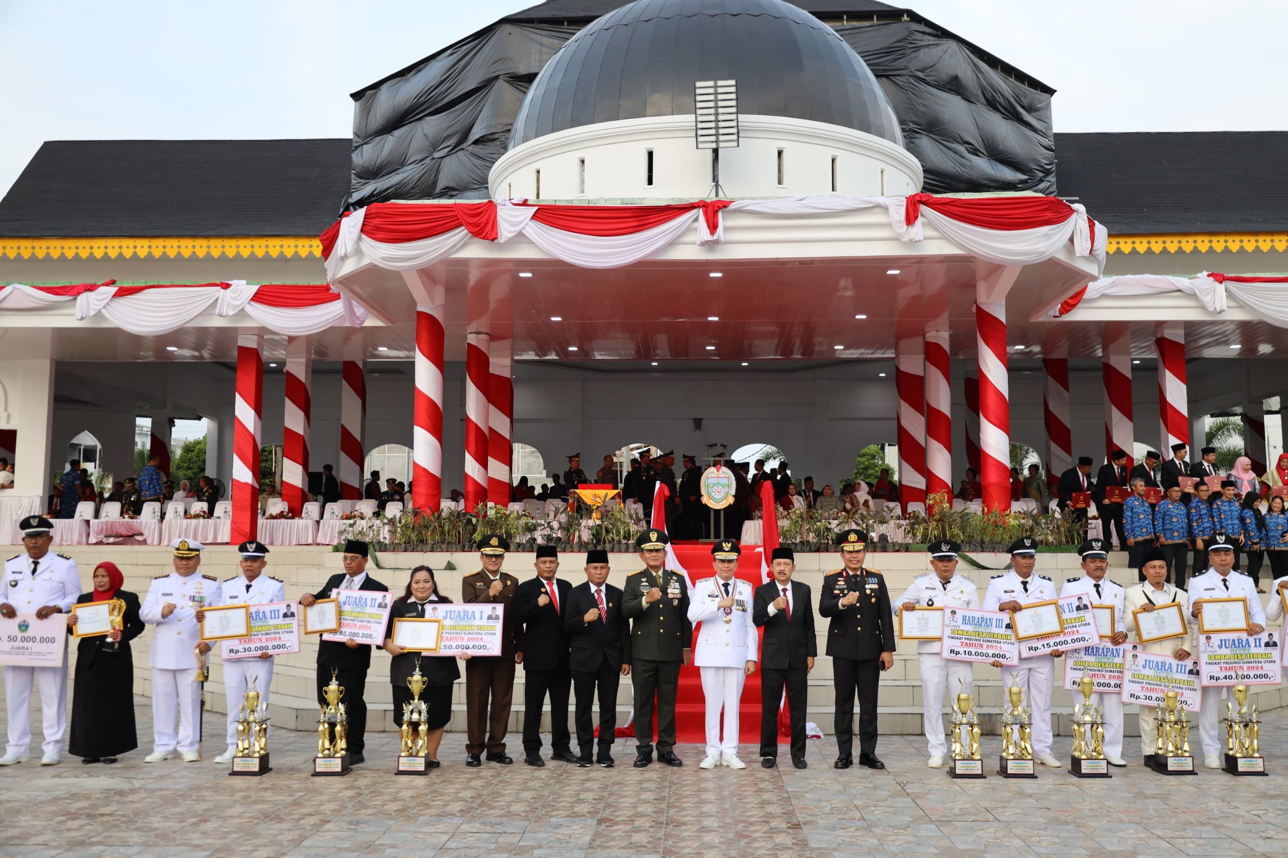 Palapanews – TNI AL, Belawan,- Komandan Pangkalan Utama TNI Angkatan Laut I (Danlantamal I) Brigjen TNI (Mar) Jasiman Purba, S.E., CHRMP., diwakili Wadan Lantamal I Kolonel Laut (P) Siswo Widodo, S.T., beserta Forkopimda Provinsi Sumatera Utara menghadiri Upacara Penurunan Bendera Merah Putih dalam rangka Hari Ulang Tahun (HUT) Ke-79 Kemerdekaan Republik Indonesia Tahun 2024 dipimpin oleh Pj. Gubernur Sumatera Utara Agus Fatoni, bertempat di Lapangan Astaka, Jalan Willem Iskandar, Deli Serdang Sumatera Utara, Sabtu (17/8/2024).