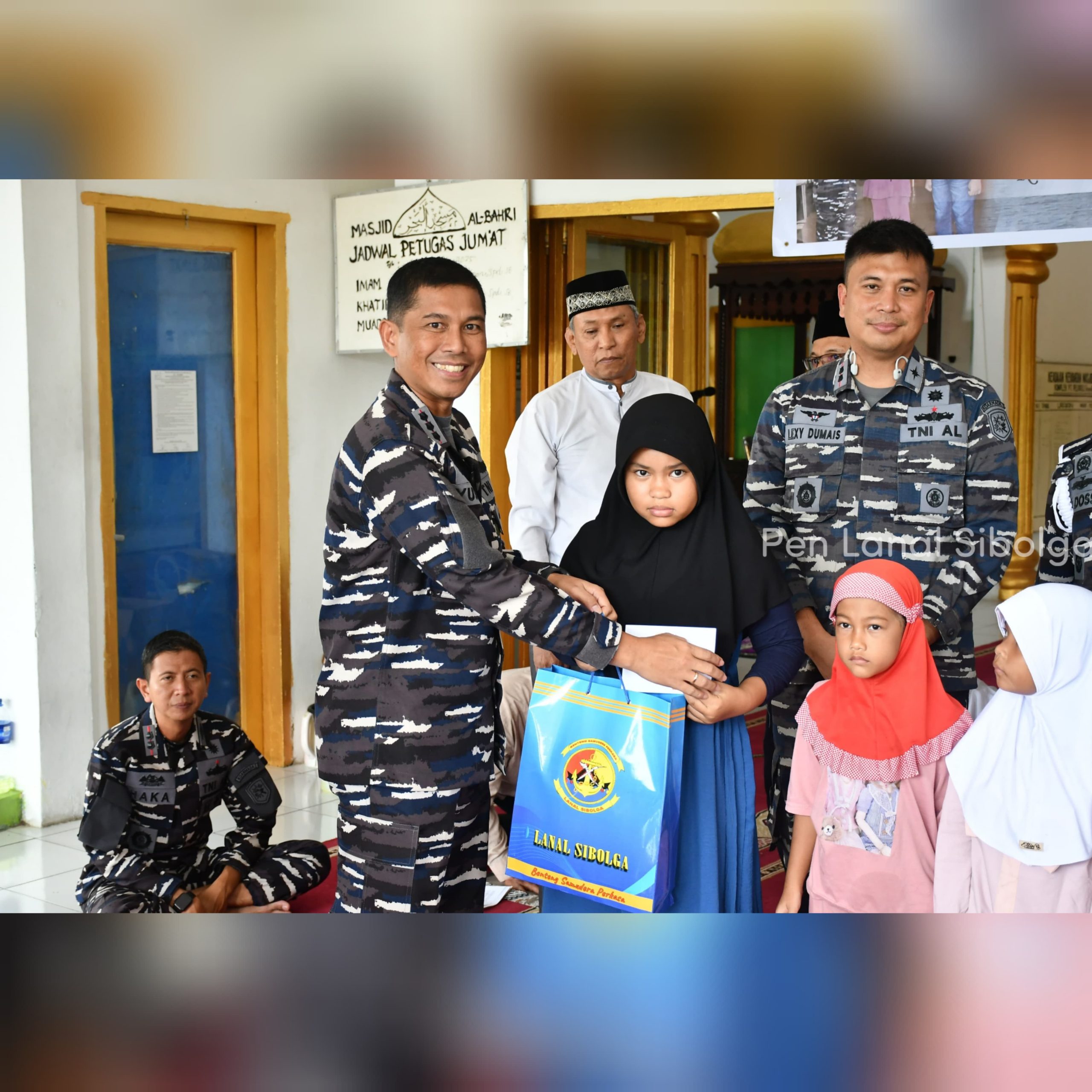 Palapanews.asia TNI AL, Sibolga,- Wakil Komandan Satuan Tugas (Wadansatgas) Trisila 2025 Kolonel Laut (P) Yusup Yanto, M.Tr. Hanla., M.M., CTMP., menunjukkan kepedulian sosialnya dengan memberikan santunan kepada 30 anak yatim di Masjid Al-Bahri, Pelabuhan Pelindo, Sibolga Sambas, Kota Sibolga, Jum’at (14/03/2025).